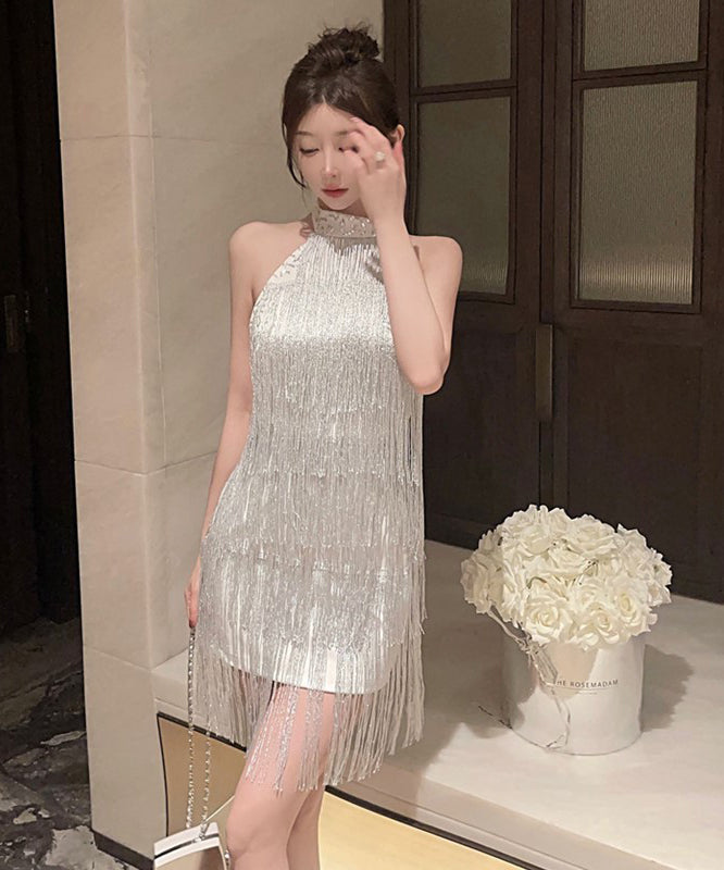 ミニドレス タッセル キラキラ party ホルターネック セクシー XH2-DD5980