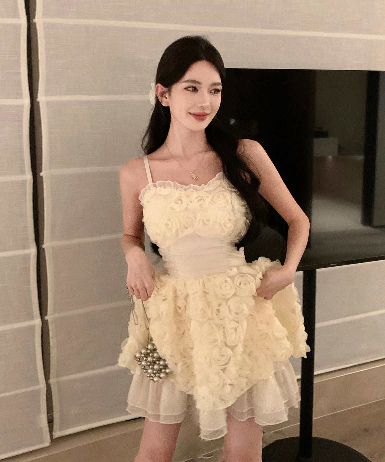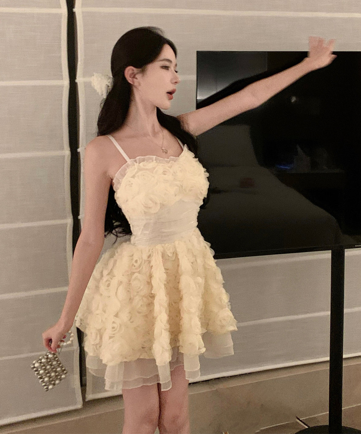 ミニドレス チュール カワセクシー キャバクラ 立体花 エレガント sweet YH2-DD6565