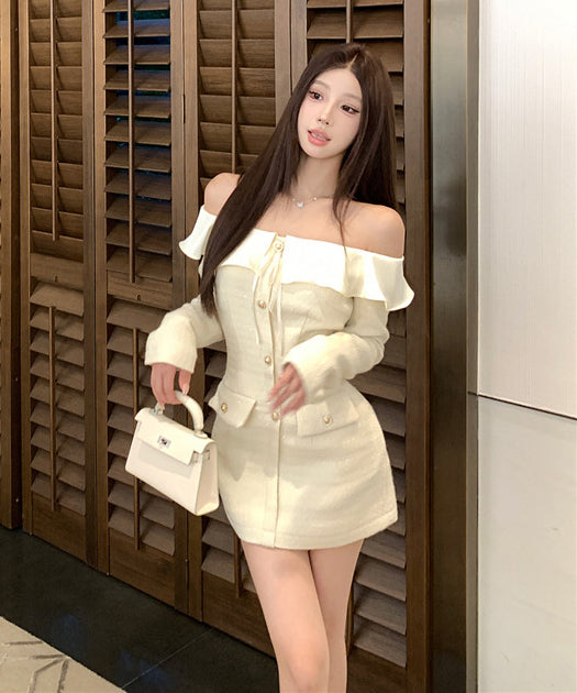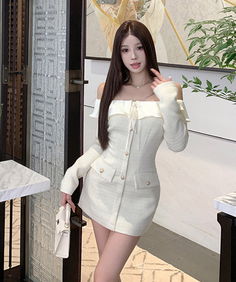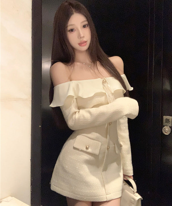 ミニドレス ツイードドレス オフショルダー フリル セクシー セレブ風 XH2-XKD-D452-954-Nov19