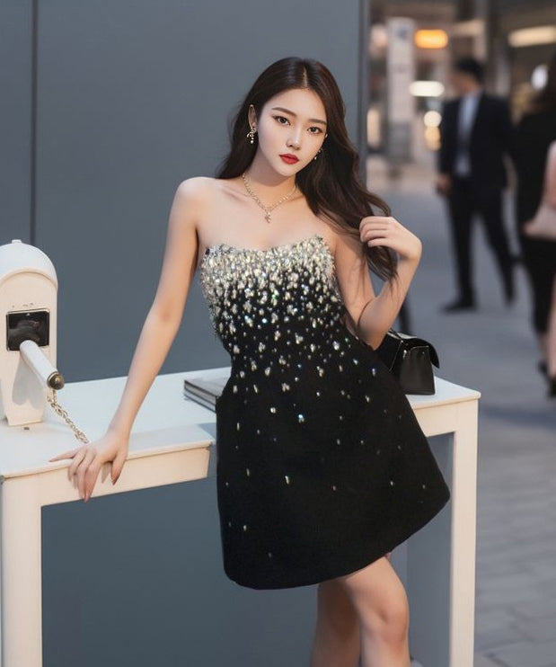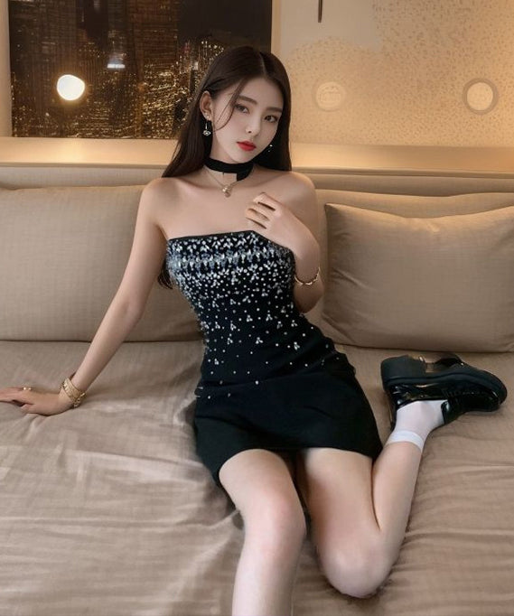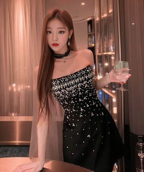 ミニドレス パーティードレス キラキラ かわいい ノーショルダー セクシー MY2-CJ-L4004