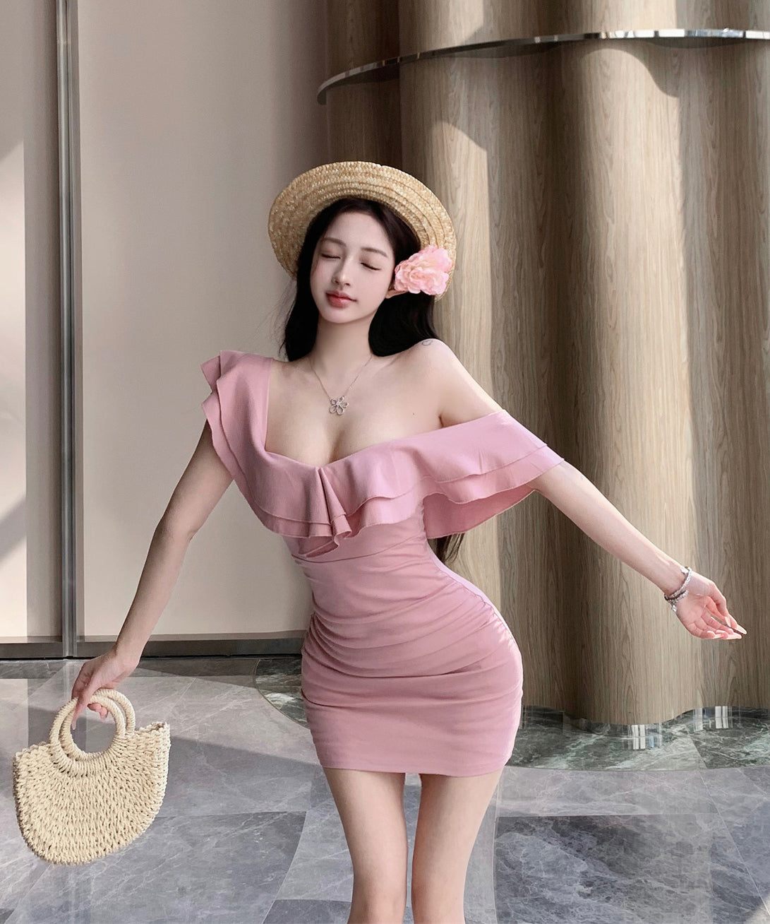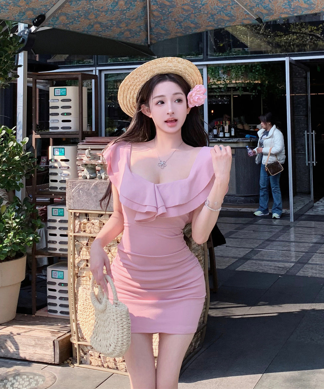 ミニドレス フリル カワセクシー タイトドレス 谷間見せ 女子力 おしゃれ XH2-MXX2856