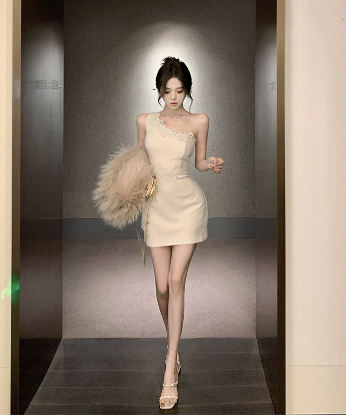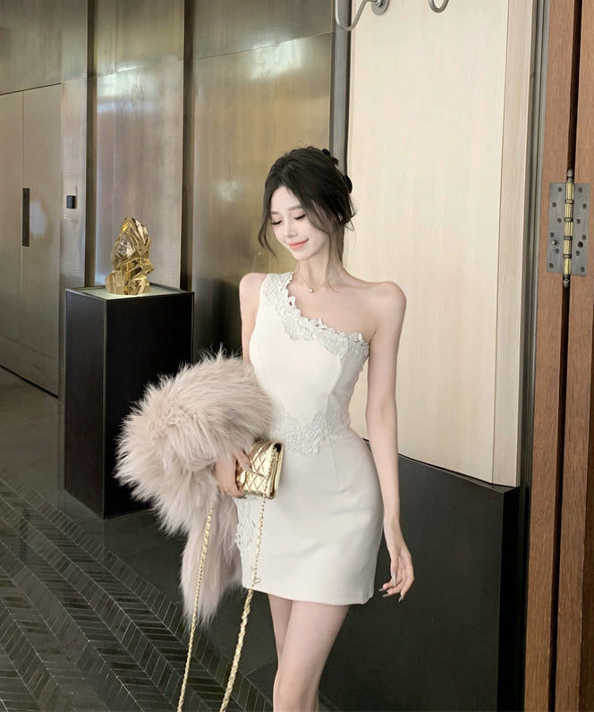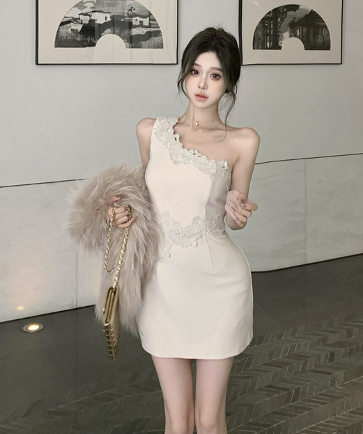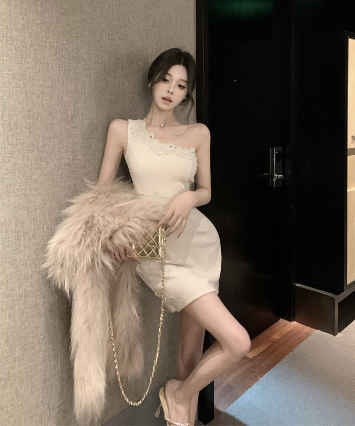 ミニドレス ワンーショルダー セクシー フラワー キャバキャバ 指名 気質 セクシー XH2-XKD-D308-6901-Dec14