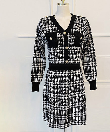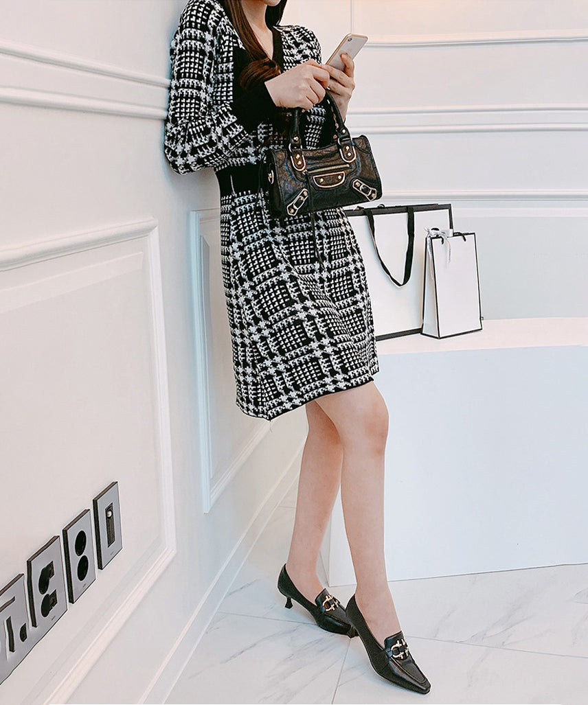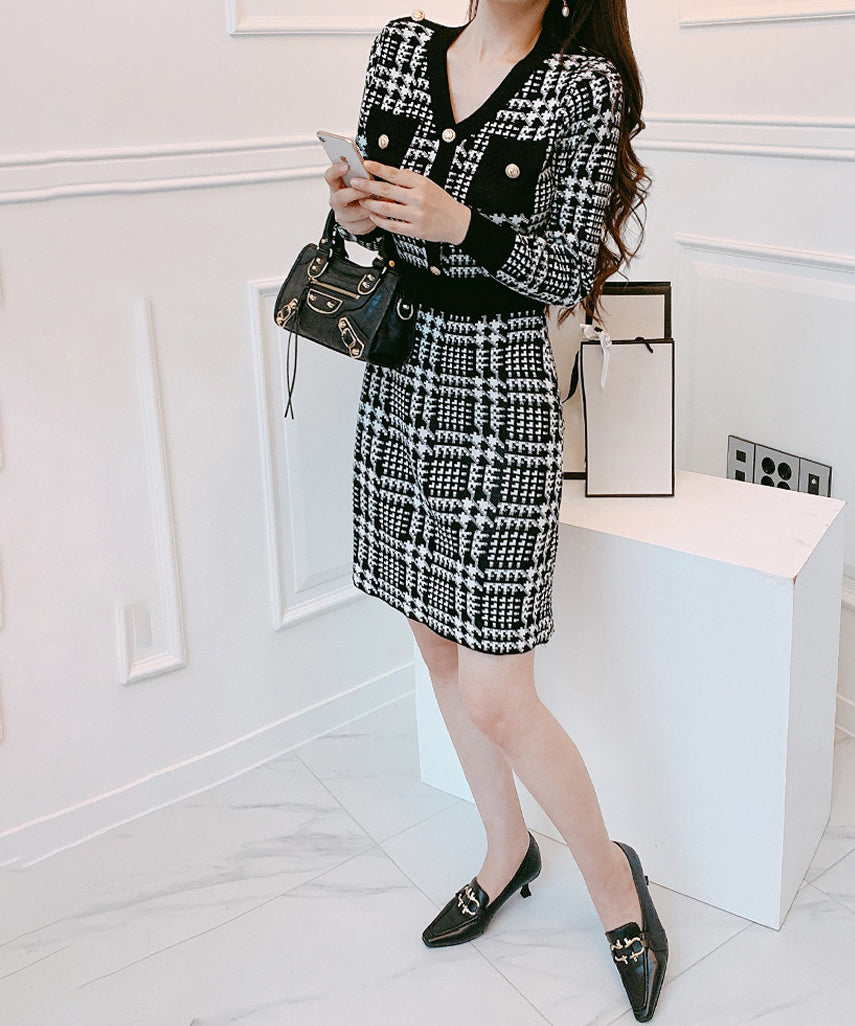 ミニドレス 着痩せ 新作 千鳥柄 高級 YT2-MLS4976
