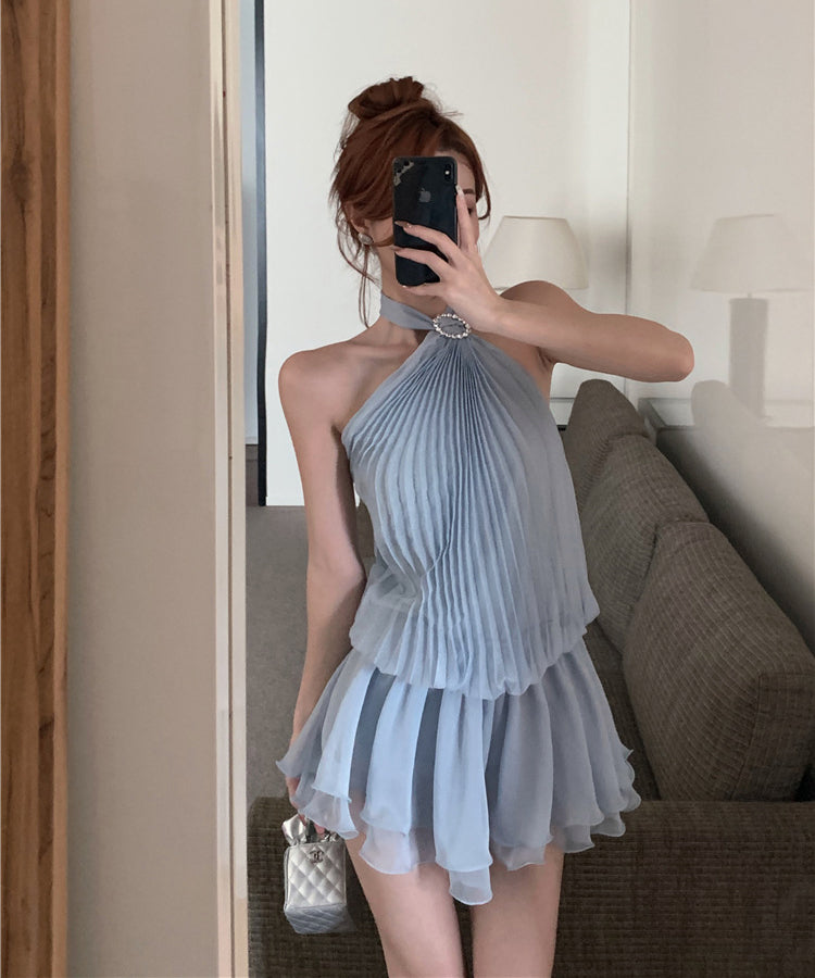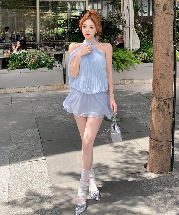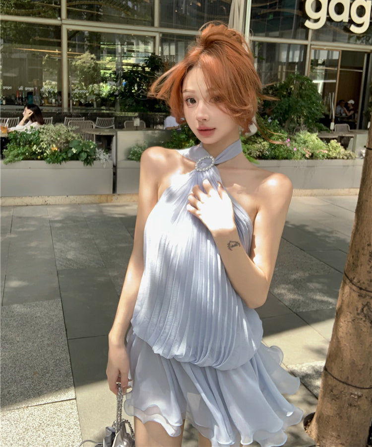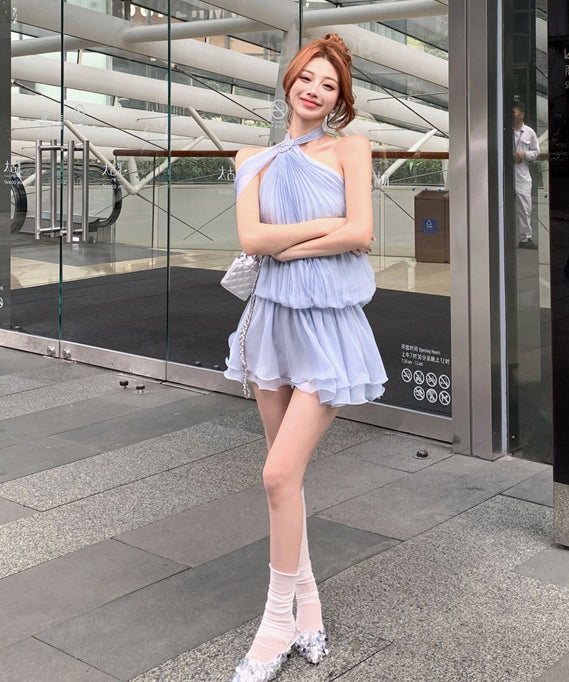 ミニドレス 着痩せ 背露出 レディライク 大人可愛い 気質 エレガント XH2-XKD-D529-6288-Jun29