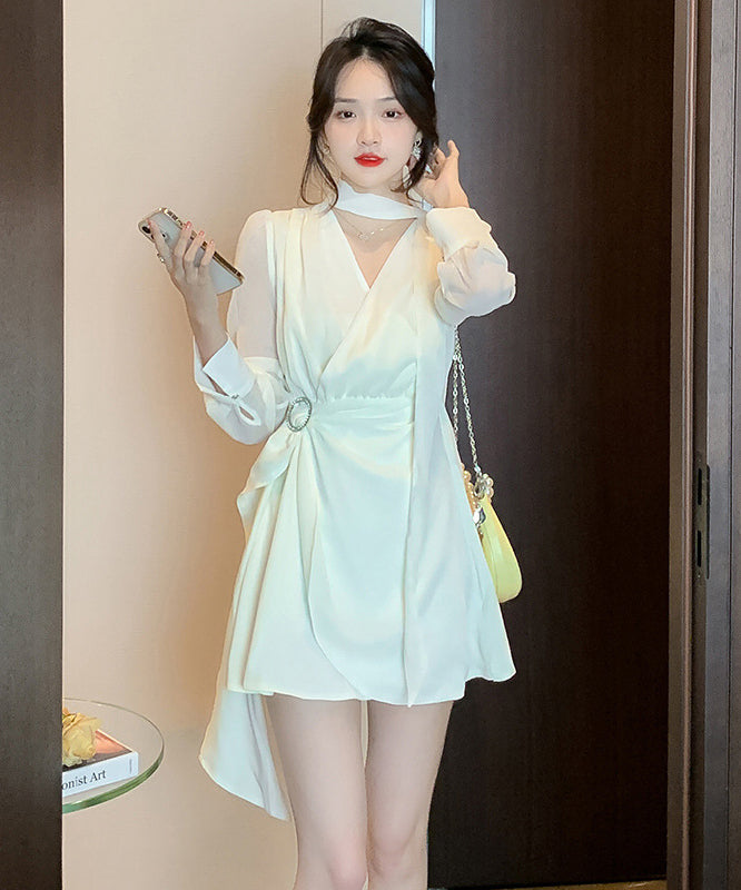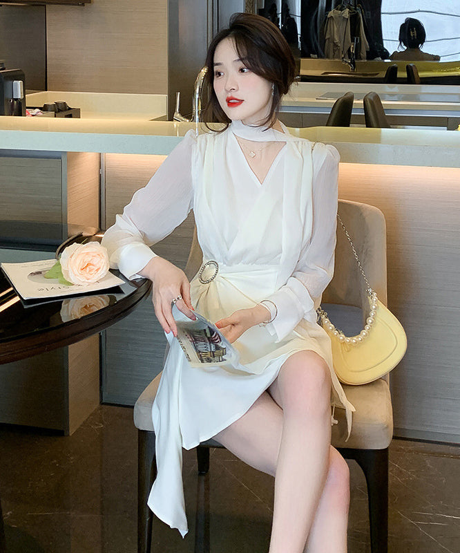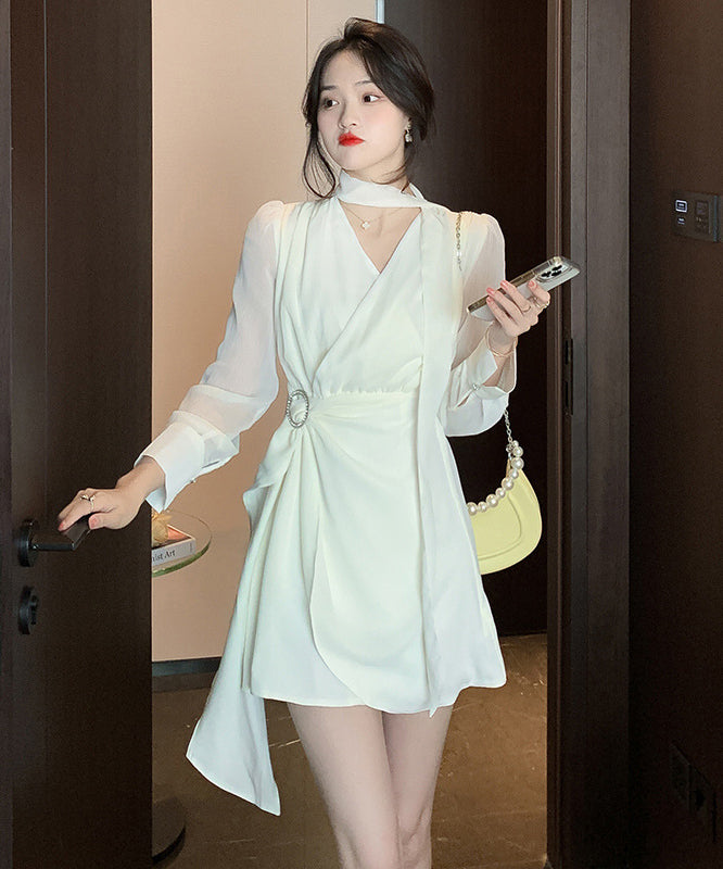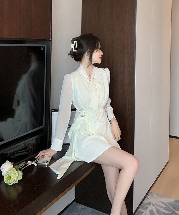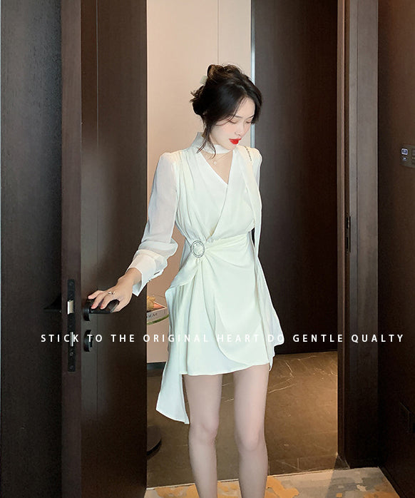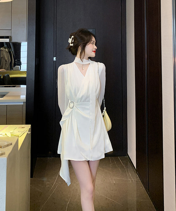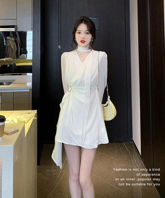 ミニドレス 秋新作 非対称 エレガント 袖付き 気質 同伴 XH2-ZED886017GDB401