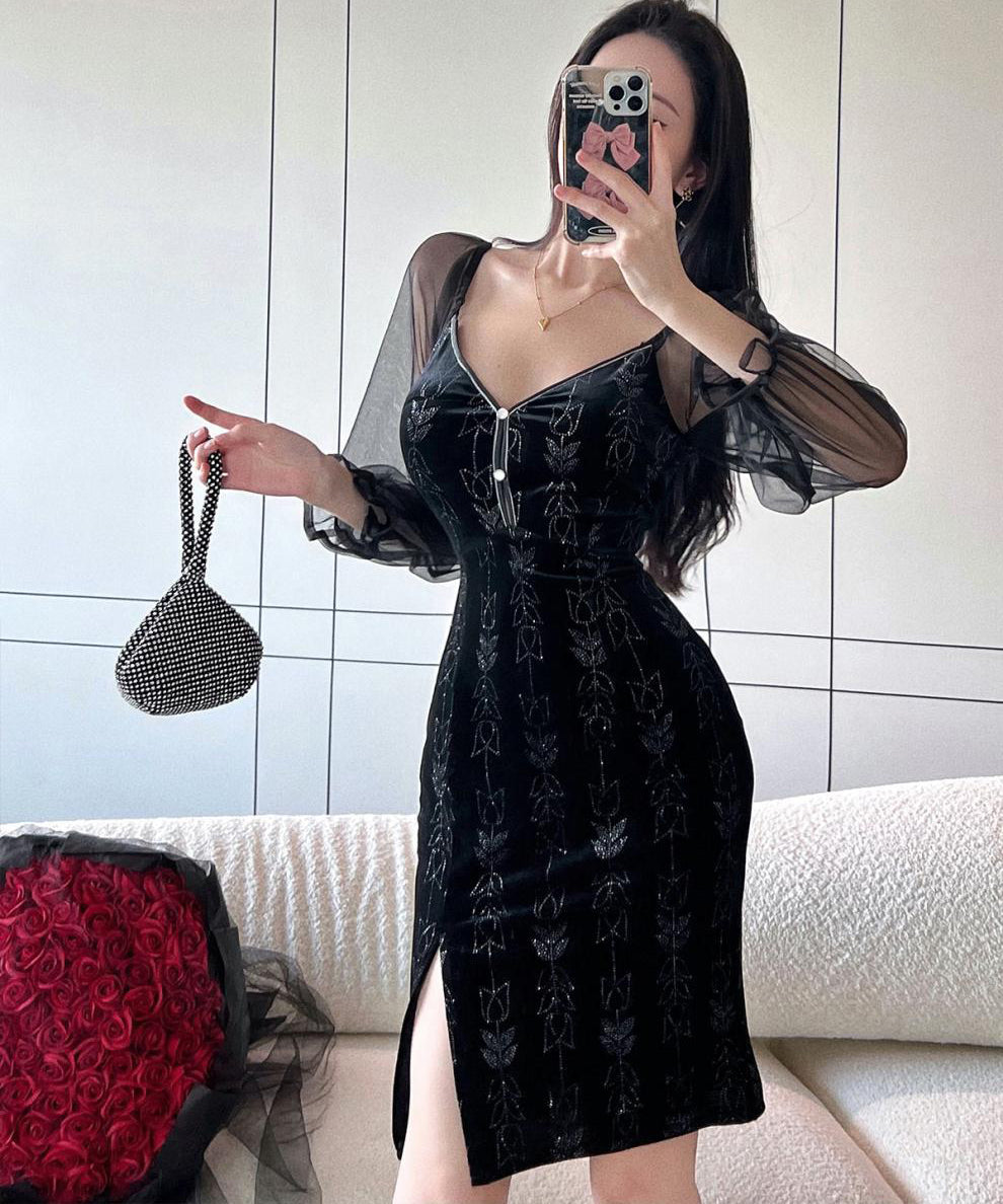 ミニドレス 肌見せ チュール カワセクシー 気質 エレガント XH2-ZED881056DXH449A