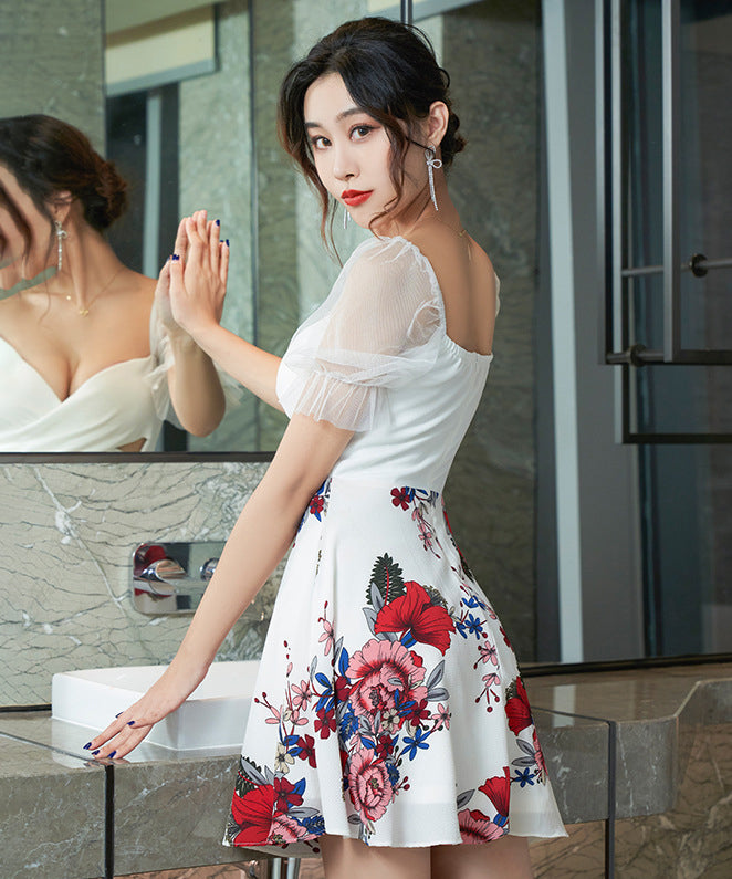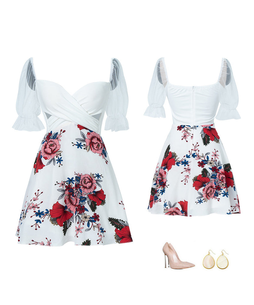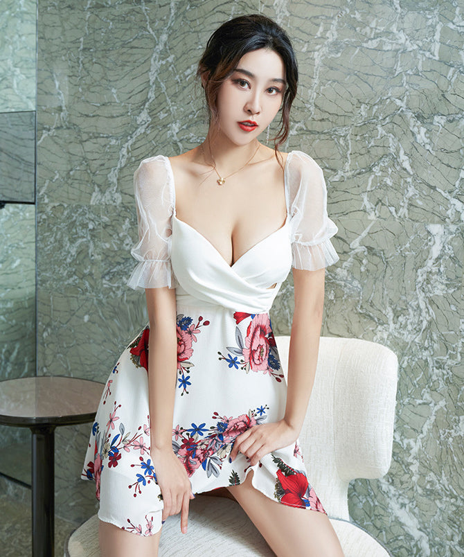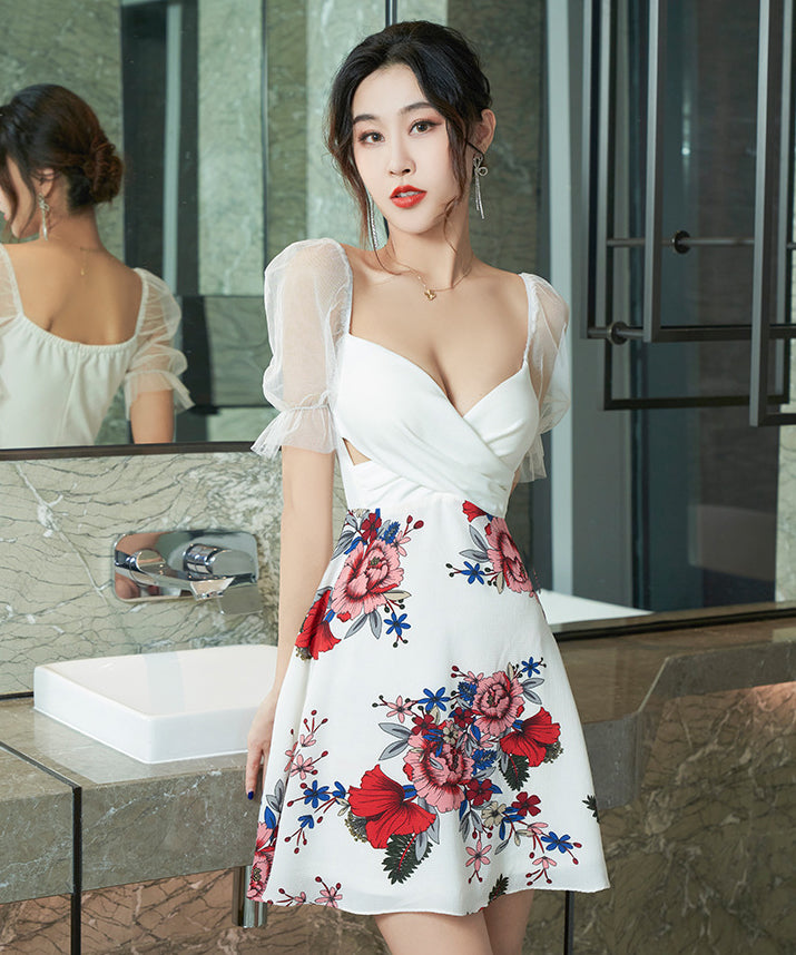ミニドレス 花柄 かわいい 肌見せ 新作 Aライン キャバドレス 指名 MY2-XYD2186