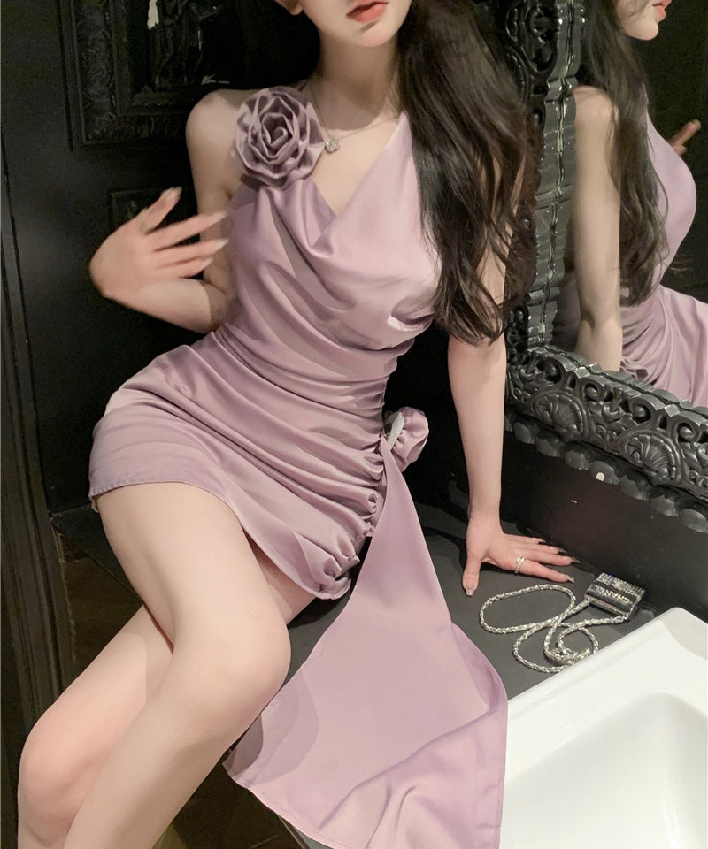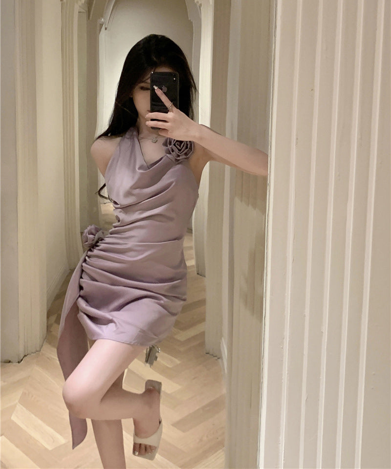 ミニドレス 非対称 ホルターネック セクシー 気質 フラワー 背露出 XH2-XKD-D319A-6221-Jul0