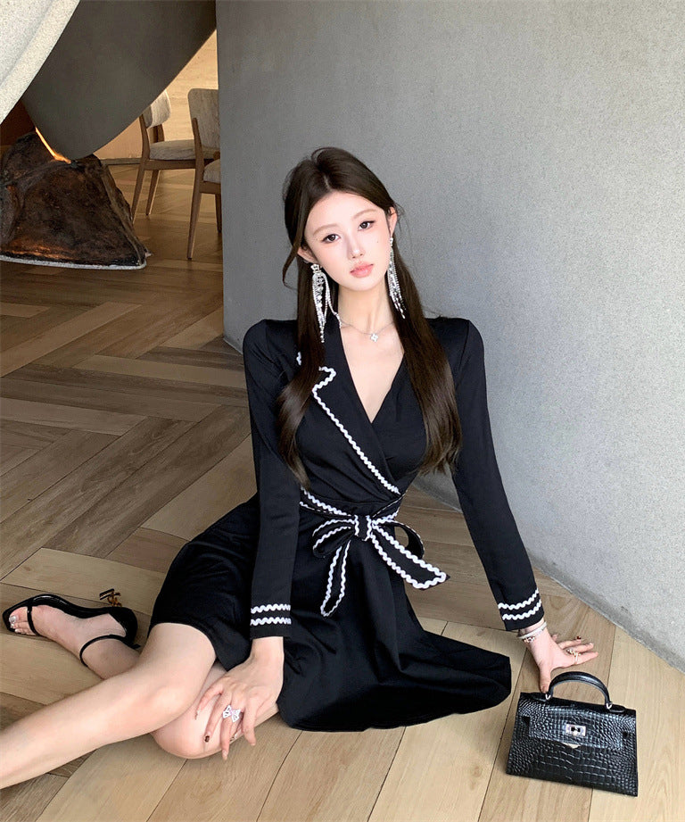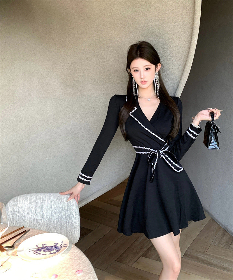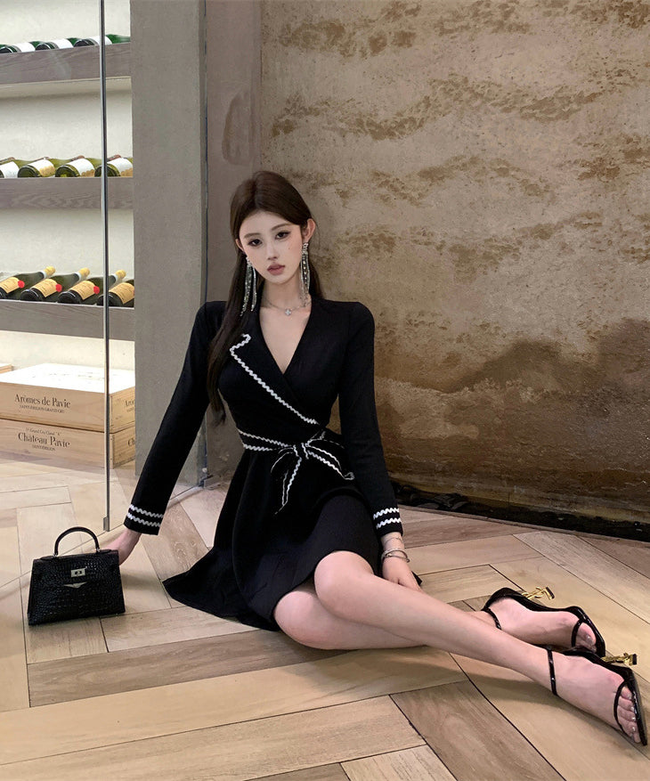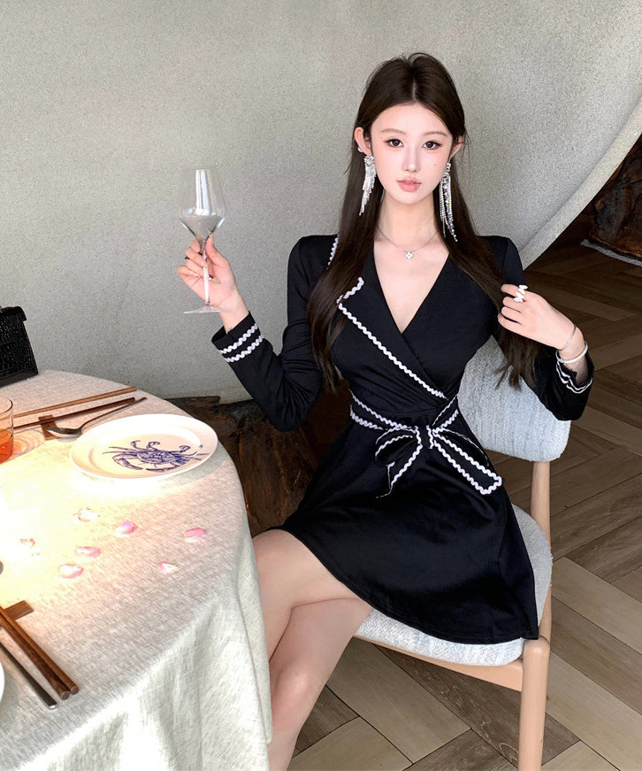 ミニドレス Aライン 着痩せ 気質 リボン エレガント おしゃれ 袖付き 韓国っぽ 大人可愛い XH2-ZED881173DXH348B