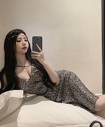レオパード柄 セクシー 谷間魅せ ゴージャス 肌見せ ナイトクラブ XH2-LQE5097H418