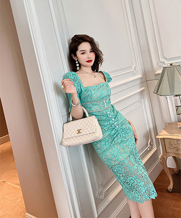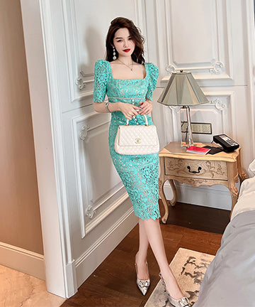 レース スクエアネック 宴会 ダイヤモンド 着瘦せ 高級感 XH2-JY20133