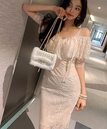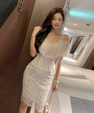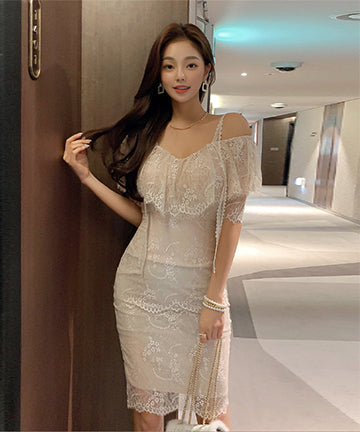 レース ミニドレス 可愛い 肌見せ 二次会 フリル 体型カバーXH2-ZED887196A71