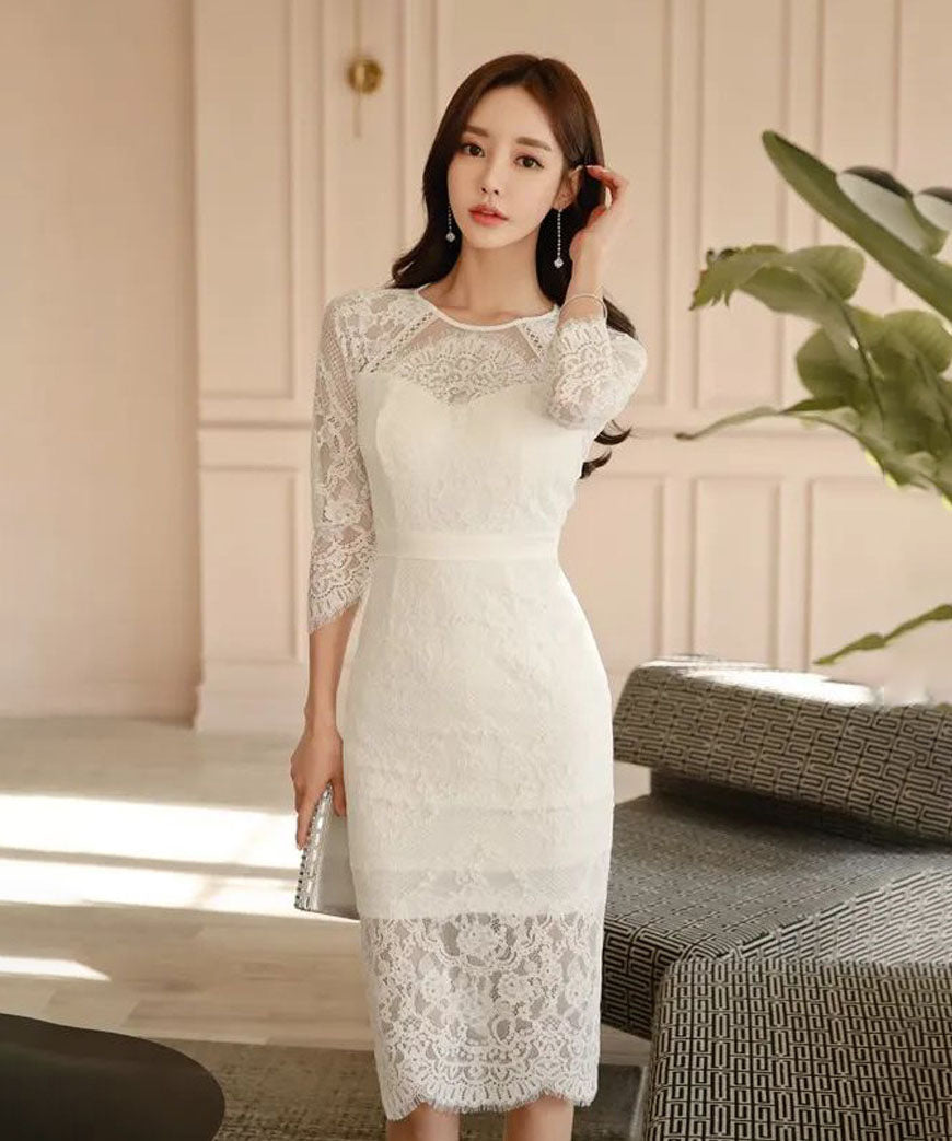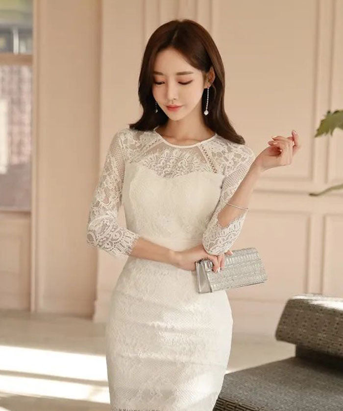レース 膝丈ドレス おしゃれ 美足効果 高見え 着瘦せ 気質 MY2-ZED882698BH506