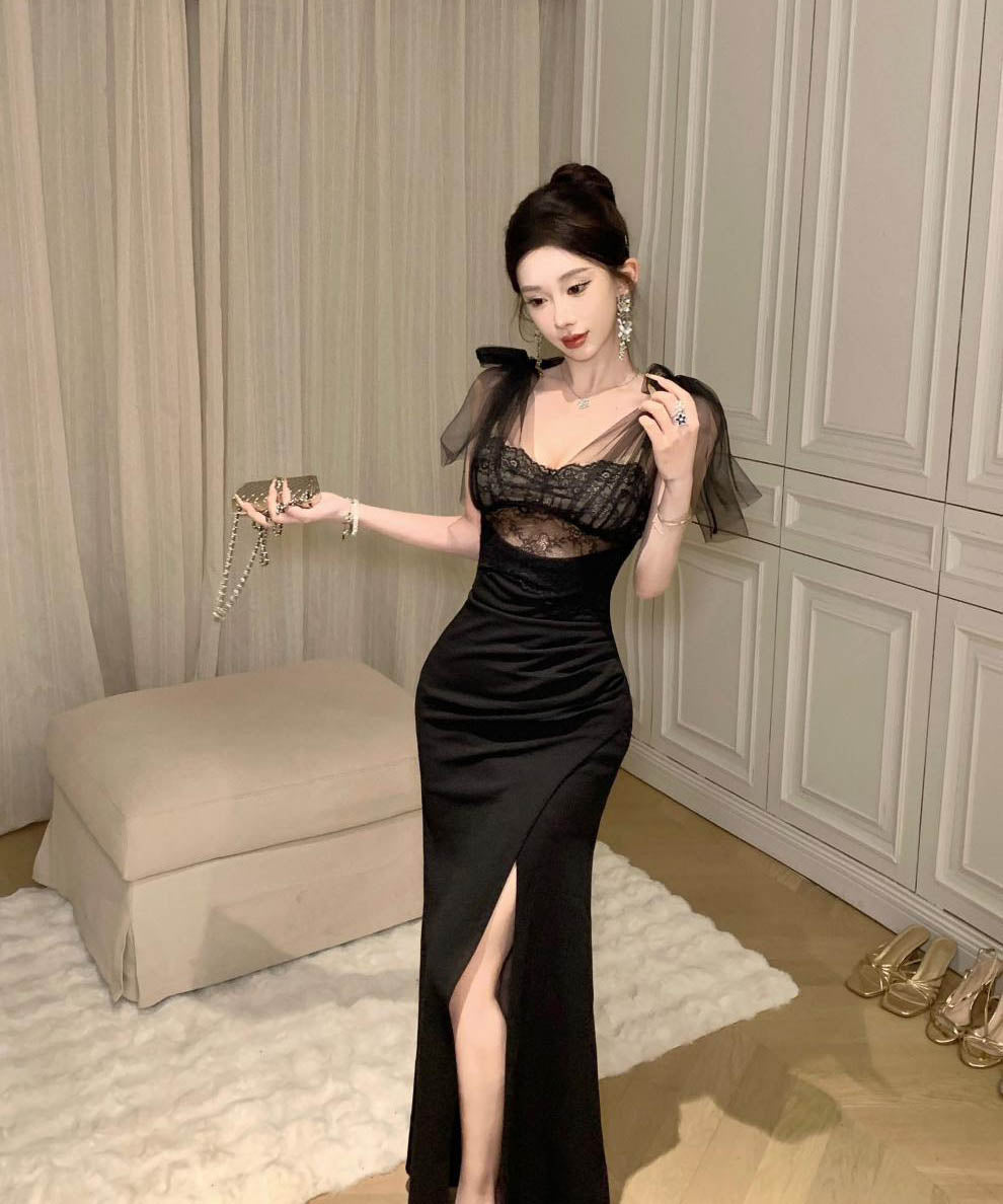 ロングドレスイベントキャバドレスチュールエレガント着痩せ気質宴会パーティー気質セクシー WQ2-ZED888617DXH238A