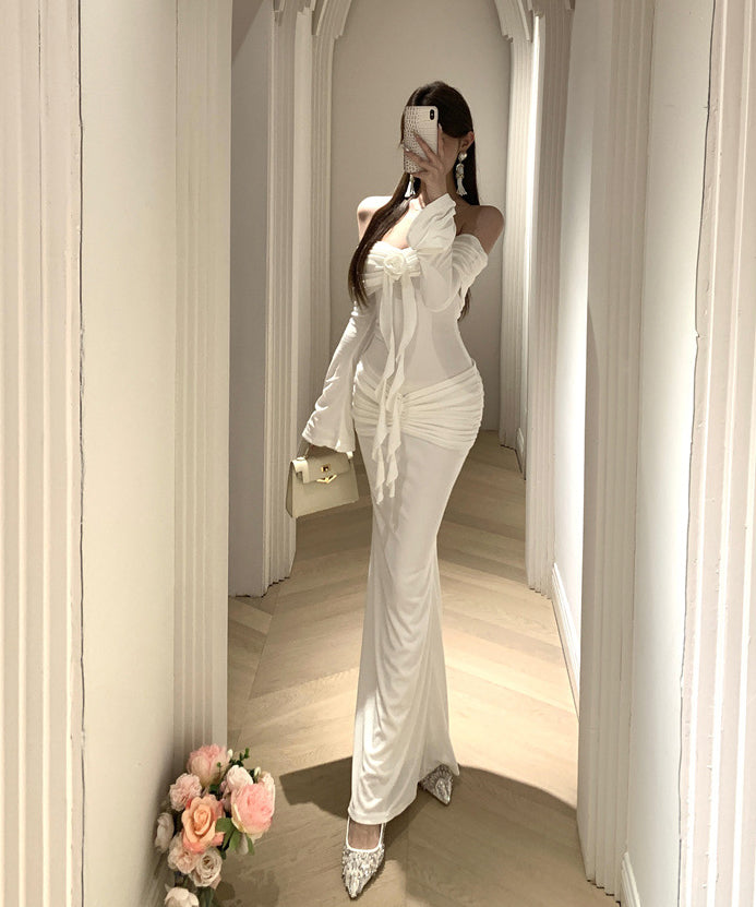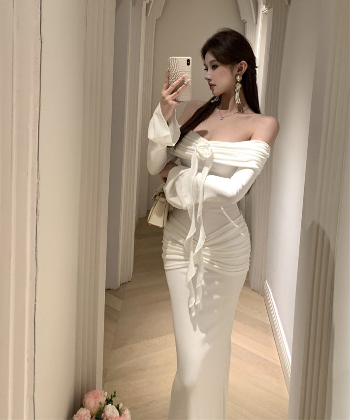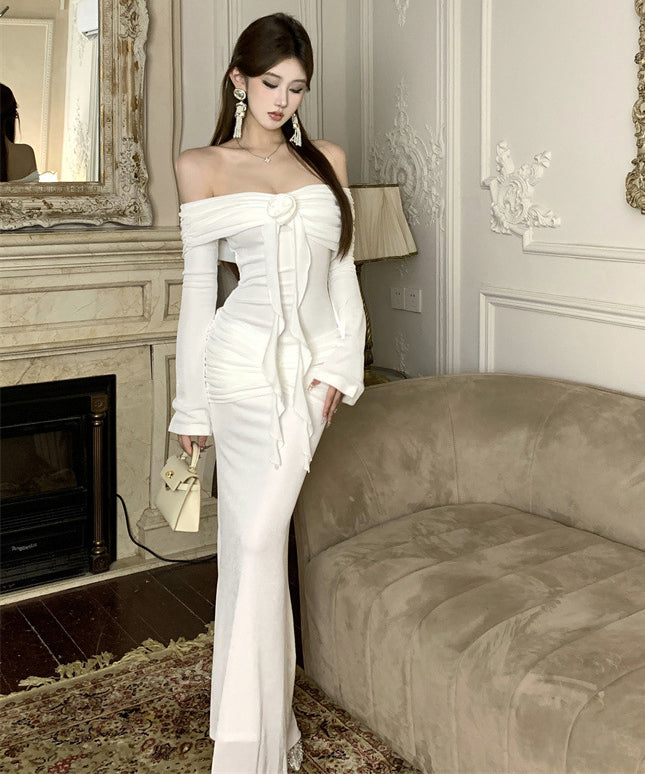 ロングドレスオフショルダータイトドレスセクシーフラワーセクシーマーメイドドレスXH2-CD7-437-24380750
