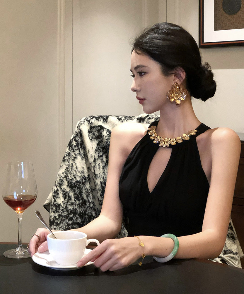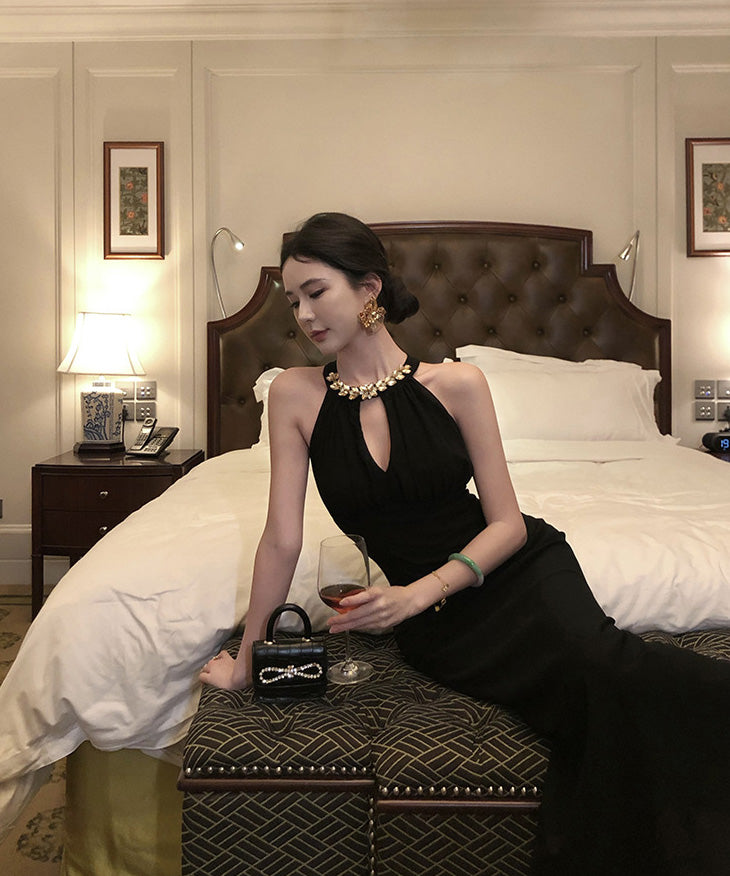 ロングドレスキャバドレスキラキラホルターネックセクシー高級感宴会パーティー誕生日谷間見せ気質 WQ2-DD4159