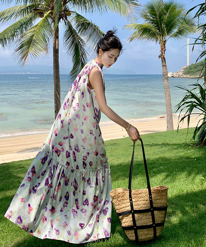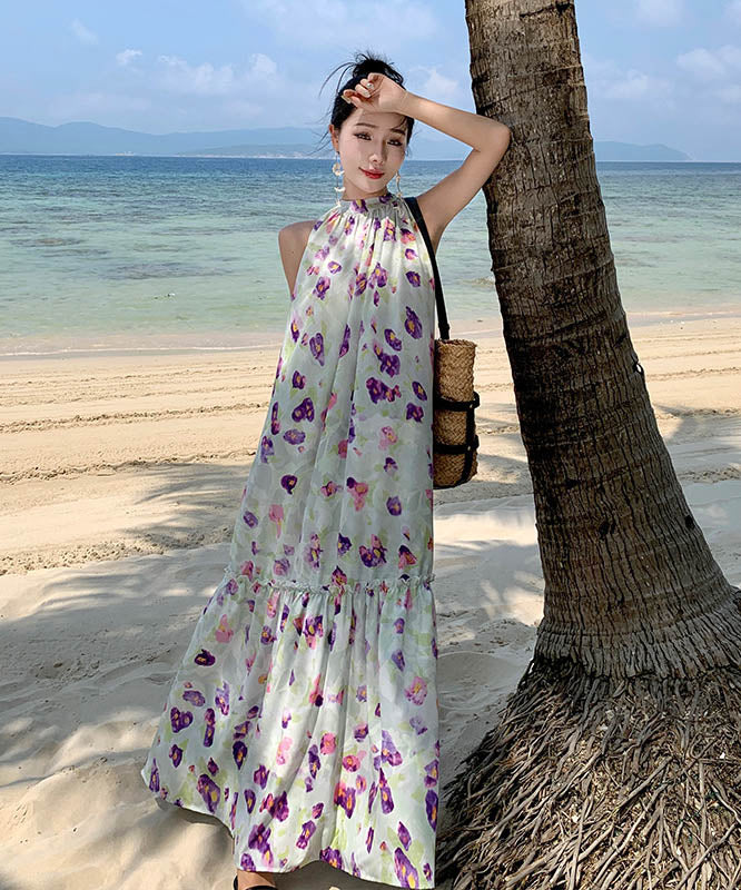 ロングドレスサンドレス花柄ホルターネックセクシー着痩せ気質ビーチ海旅行SNS話題 WQ2-XHY918009