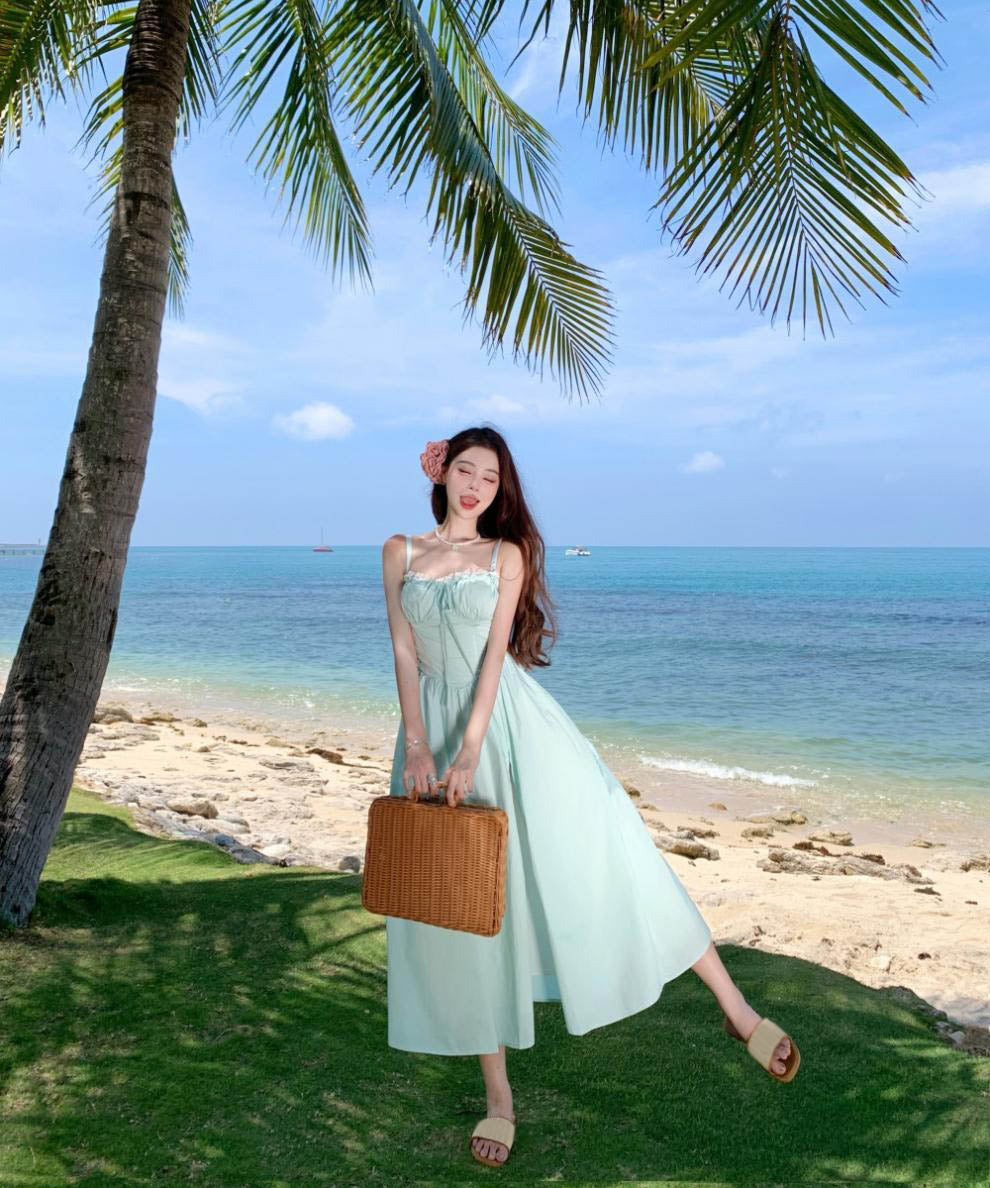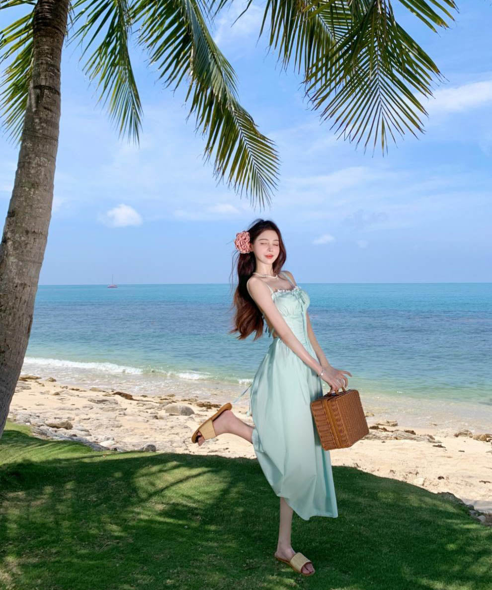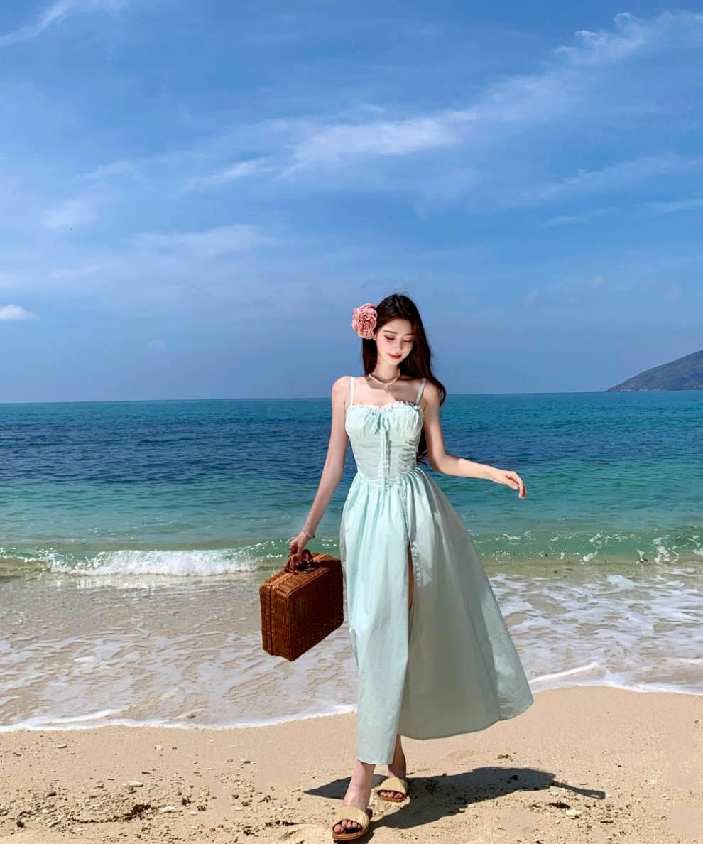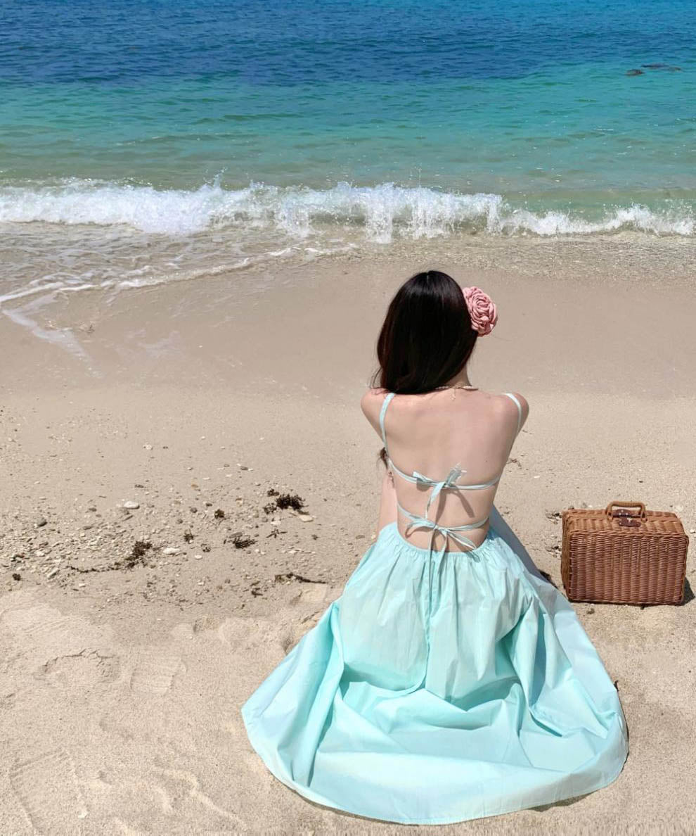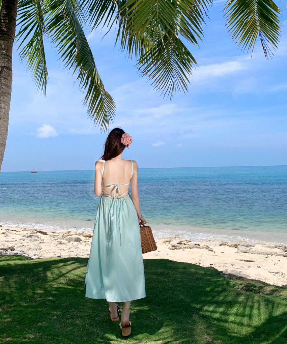 ロングドレスサンドレスAラインバックレスドレスフリル体型カバーセクシー大人可愛い旅行SNS話題 WQ2-CD4-516-52700550