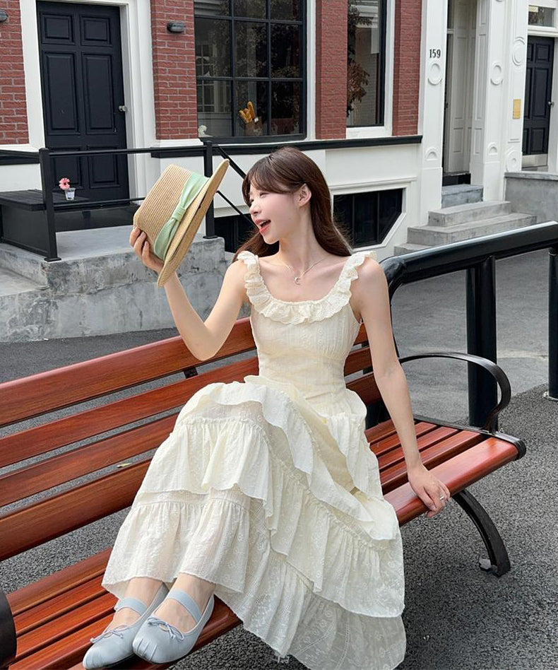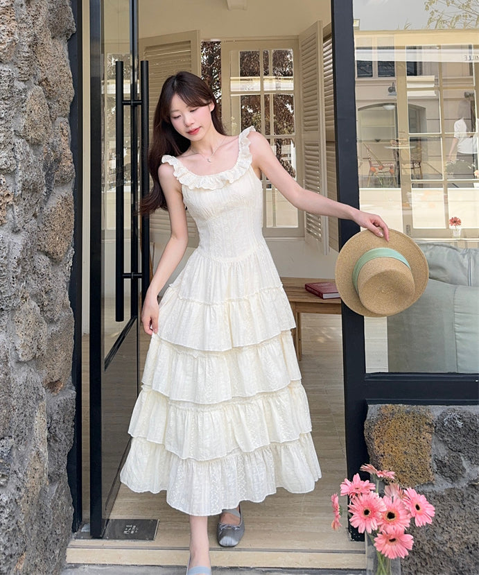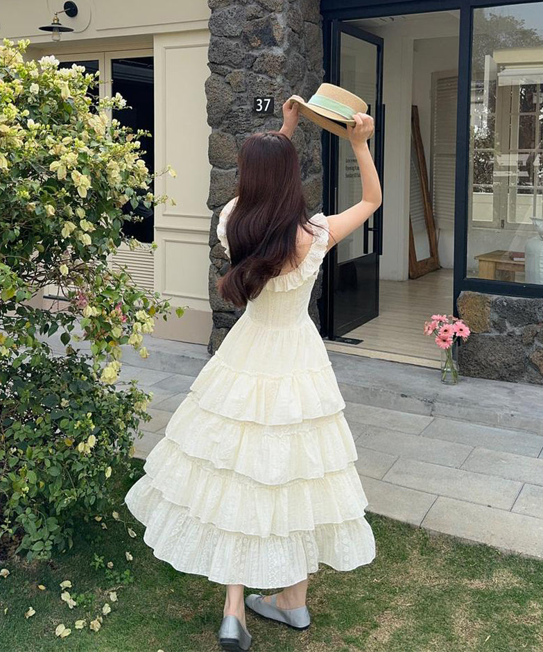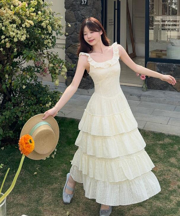 ロングドレスティアードスカートカワセクシーエレガント着痩せ気質フリル夏Aライン WQ2-MXX3066