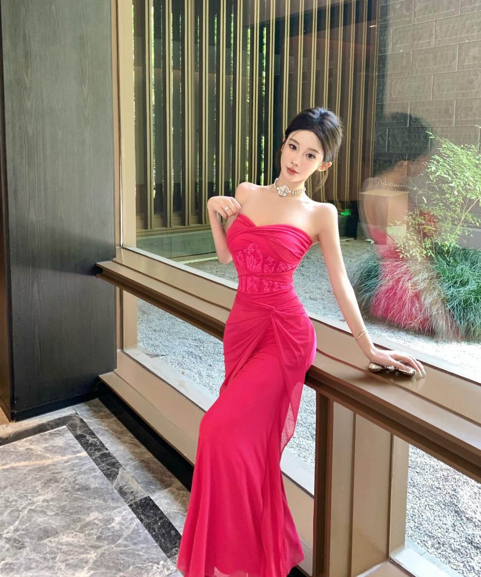 ロングドレスナイトクラブキャバドレスベアトップセクシーエレガント宴会パーティーレース高級感イベント WQ2-ZED888643DXH238A