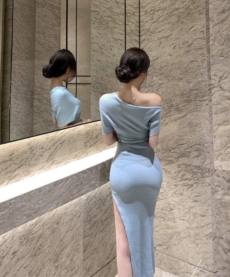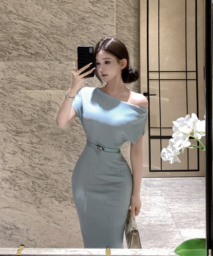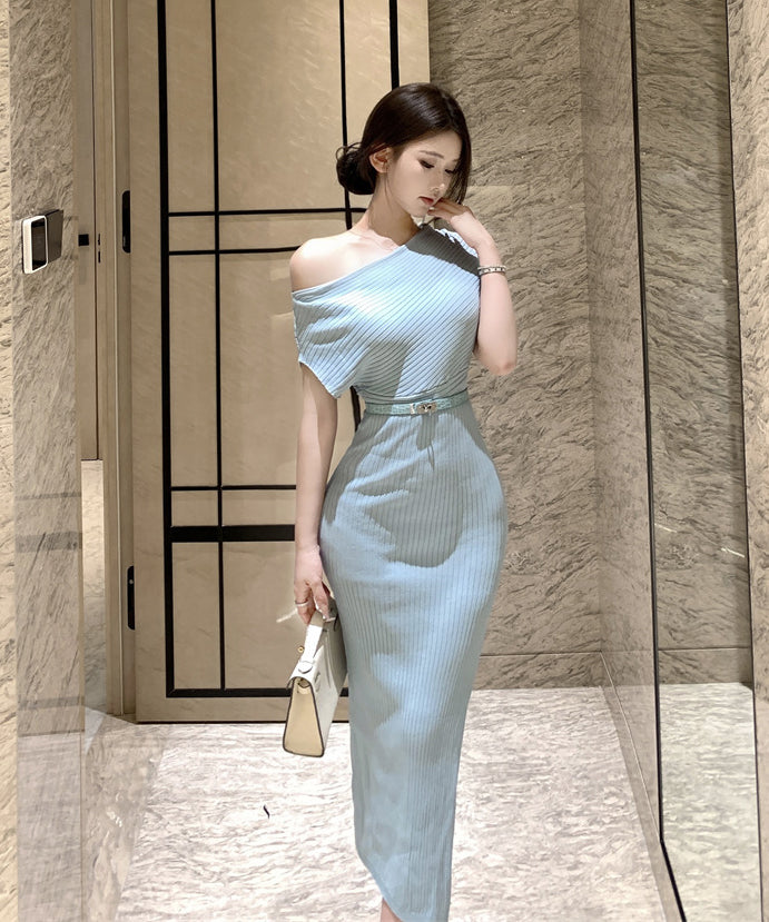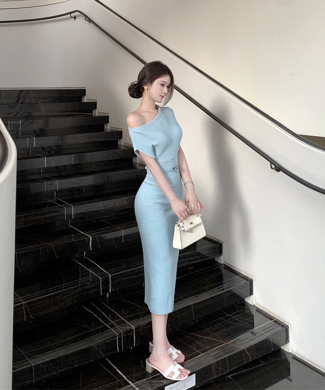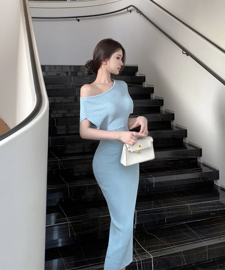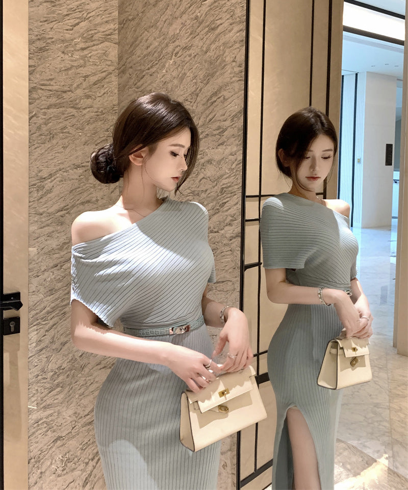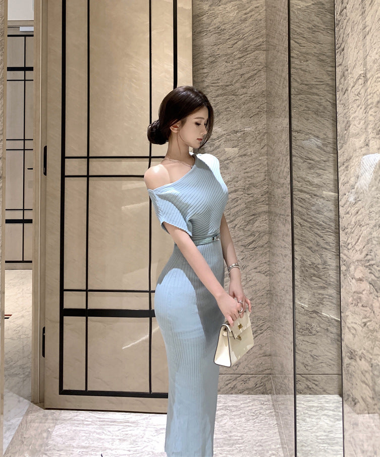 ロングドレスニットドレスワンショルダーセクシーエレガント通勤セクシー気質XH2-XKD-D318A-6340-Jun7