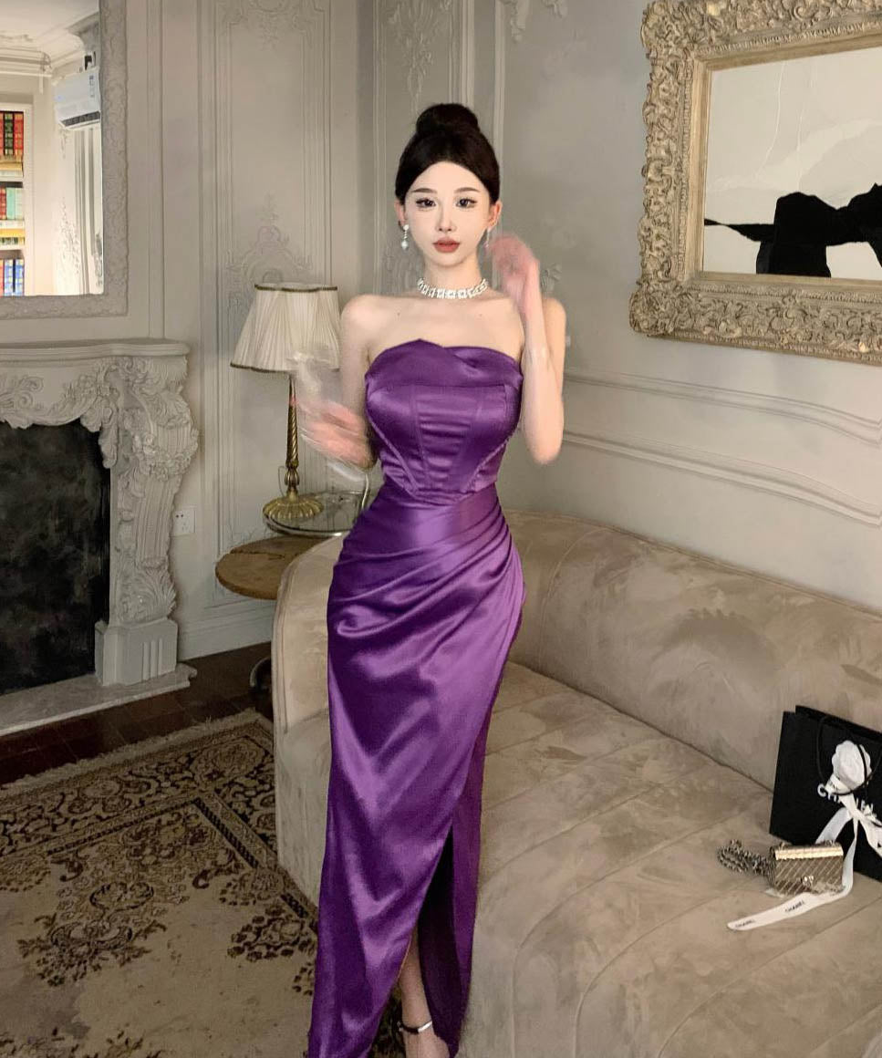 ロングドレスベアトップセクシー宴会パーティードレスサテンドレス気質イベント高級感 WQ2-ZED886073DXH343A