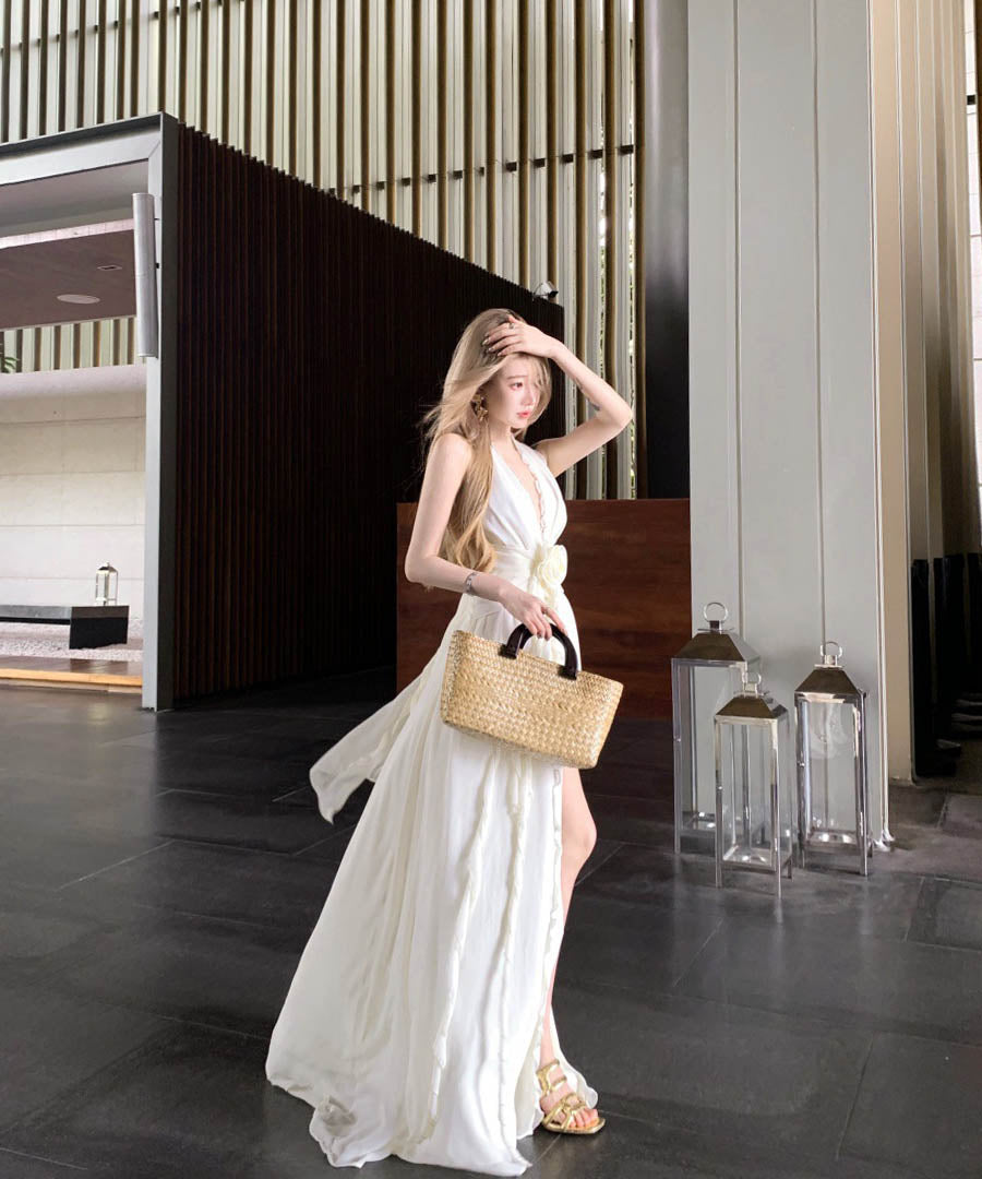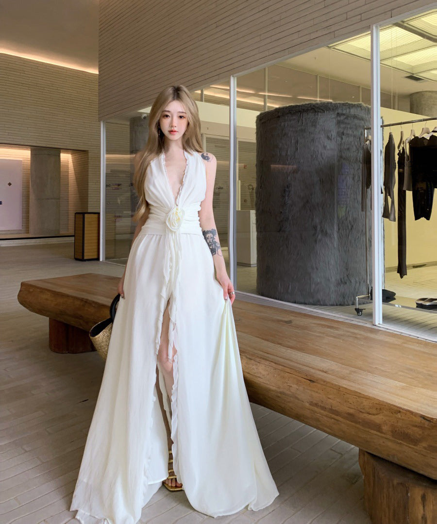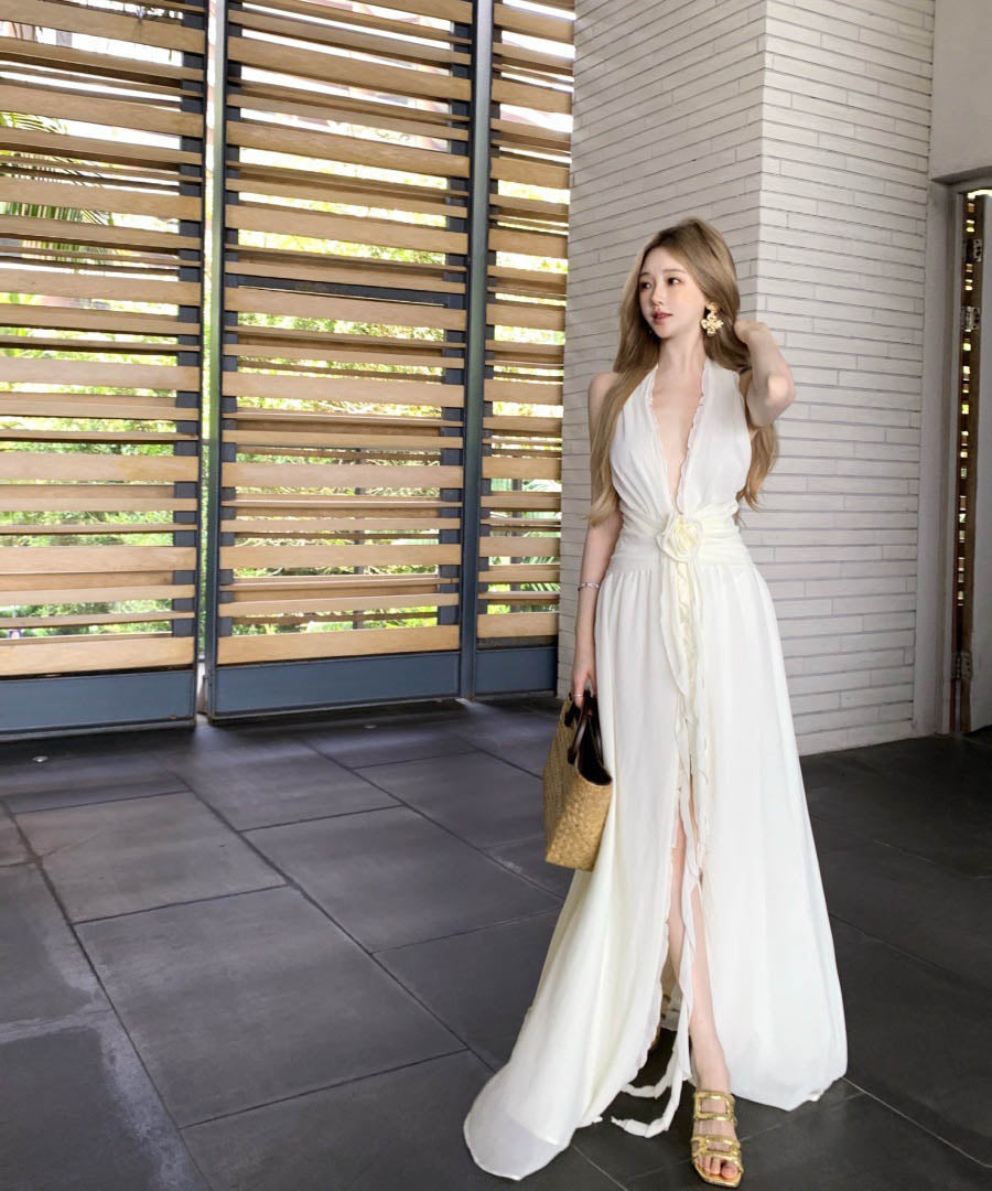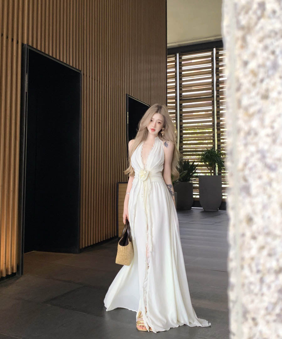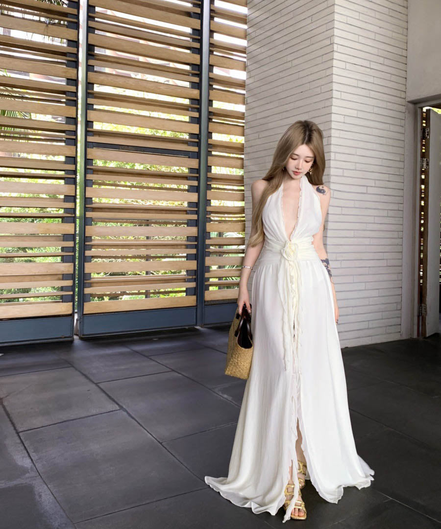 ロングドレスホルターネックサンドレスバックレスドレスセクシー谷間見せVネック小顔ハイウエストセクシーエレガント WQ2-CD3-227-10430730