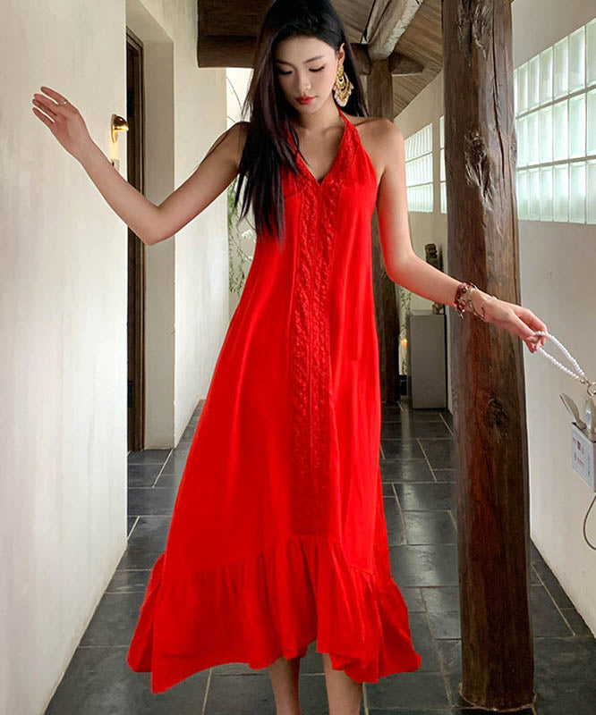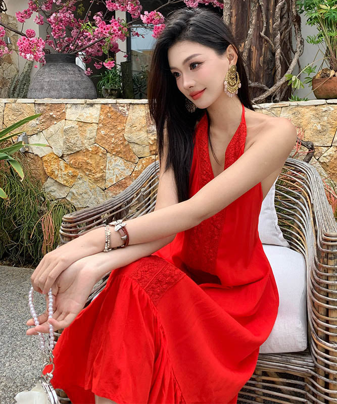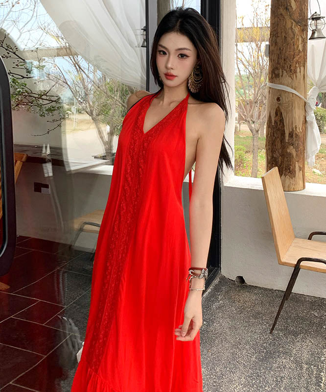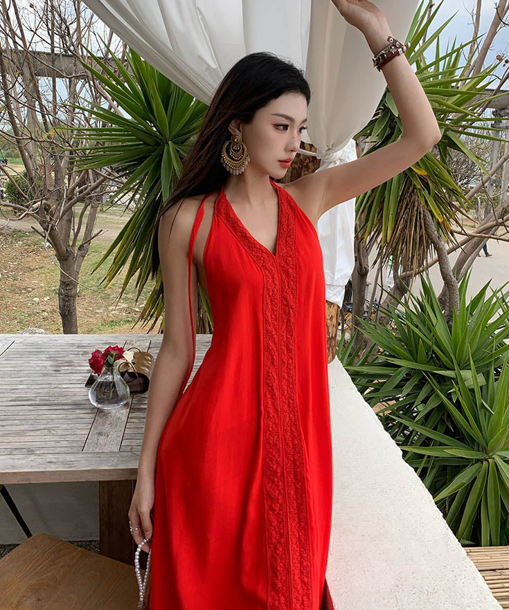 ロングドレスホルターネック体型カバー着痩せ気質旅行バックレスドレス旅行サンドレス WQ2-CD6-601-82750580