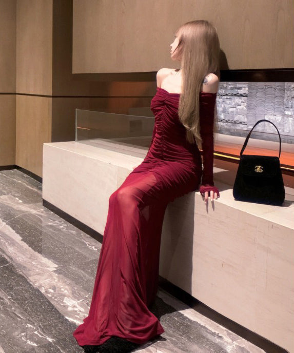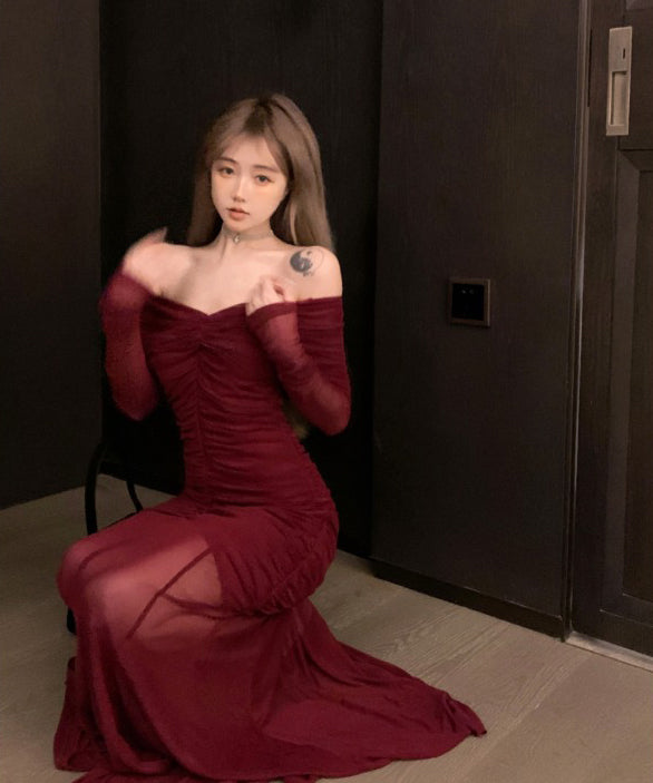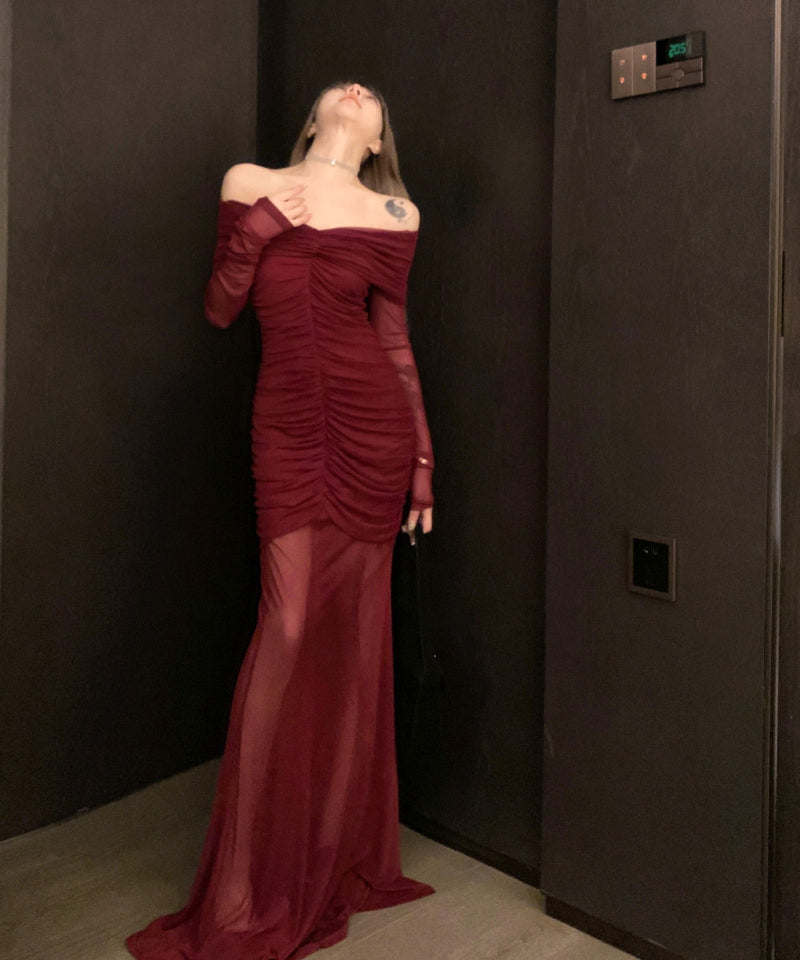 ロングドレスマーメイドドレスオフショルダーセクシー気質エレガント着痩せXH2-CD7-1C01-73780560