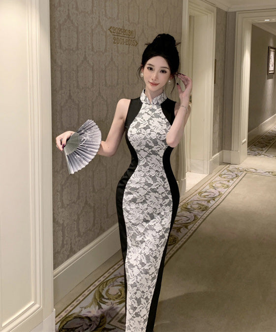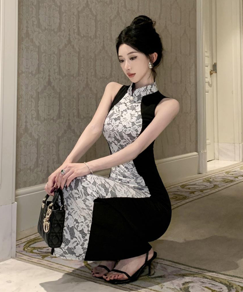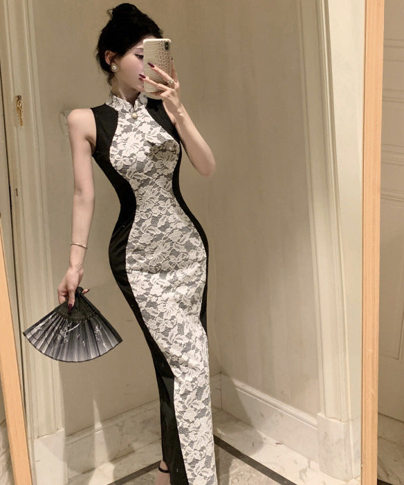 ロングドレスレースタイトドレス着痩せ気質中華風セクシーエレガントおしゃれ WQ2-ZED886358DXH348A