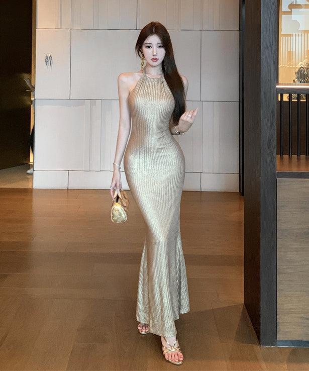ロングドレス エレガント ノースリーブ ホルターネック 美シルエット マーメイドタイト 結婚式のお呼ばれ パーティー JC2-CD7-502-34000620