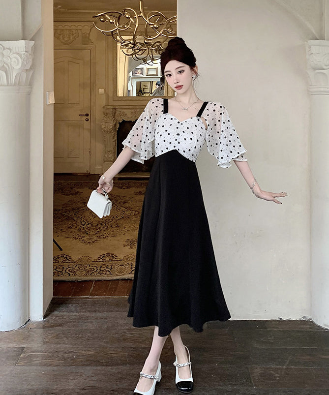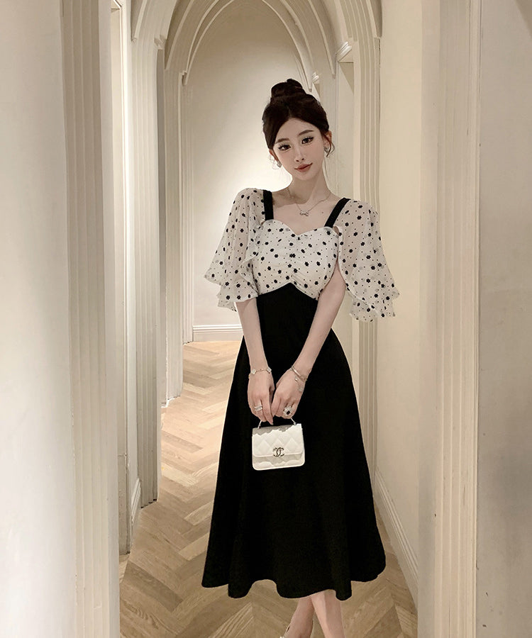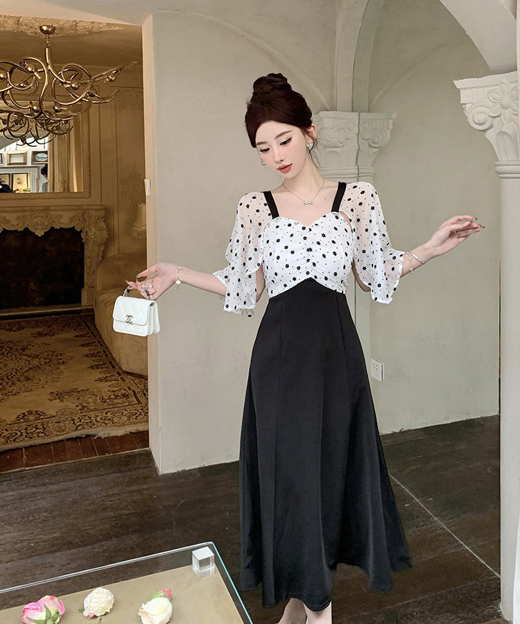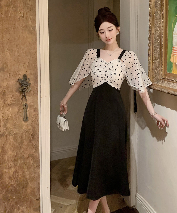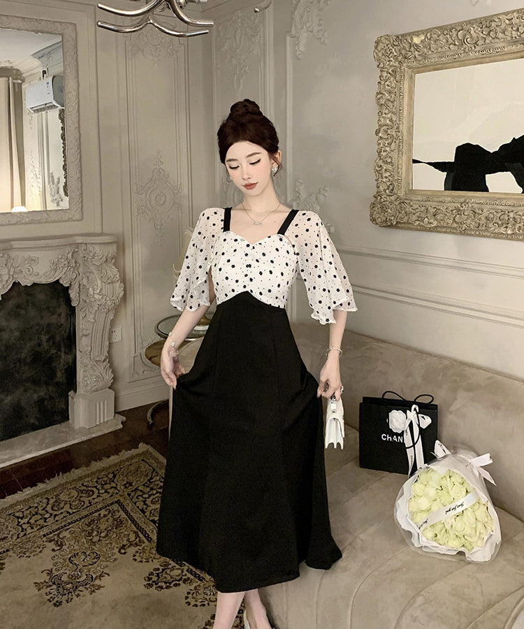 ロングドレス エレガント 水玉柄 着痩せ おしゃれ 気質 XH2-ZED885462DXH449