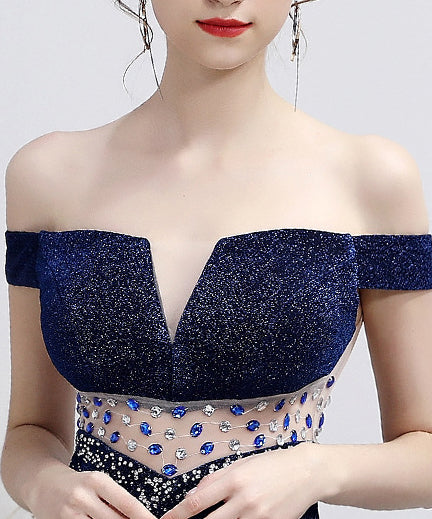 ロングドレス オフショルダー 宴会 二次会 パーティードレス キラキラ レース ゴージャス XH2-HX149