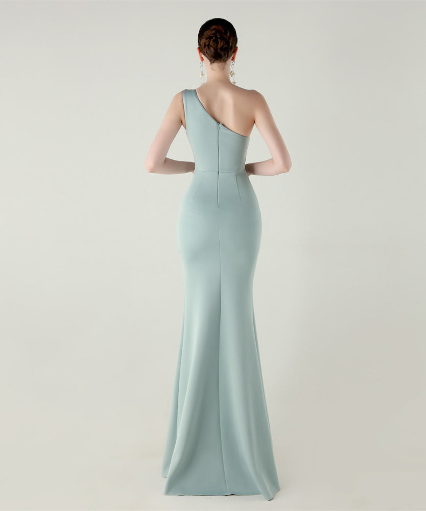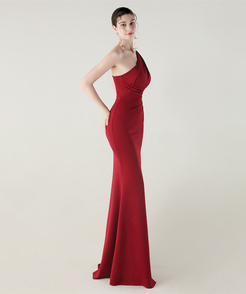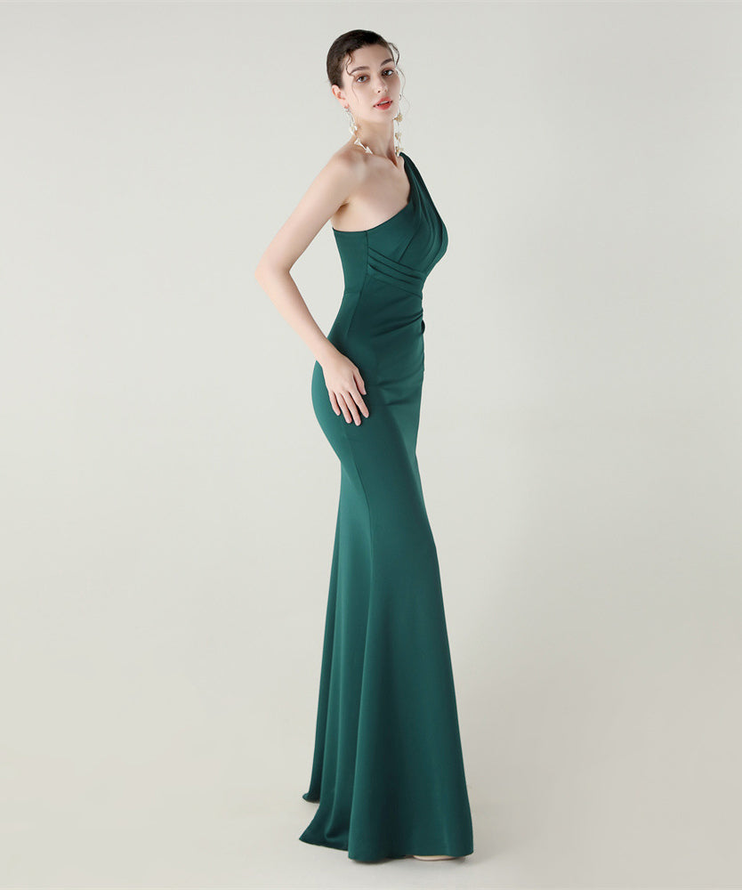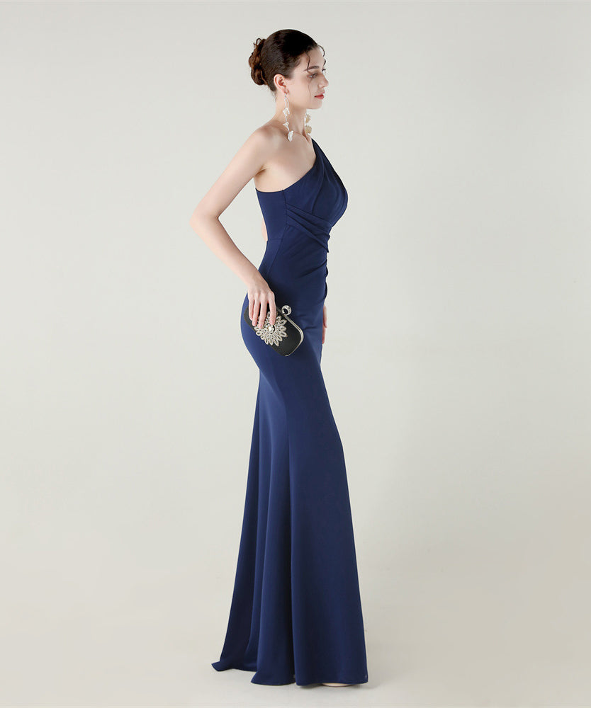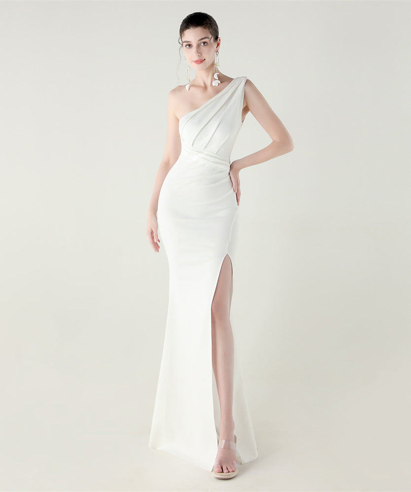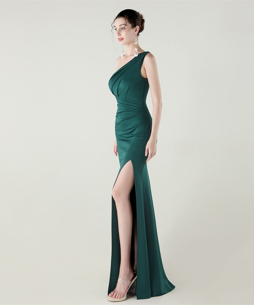 ロングドレス キャバドレス セクシー ワンショルダー サテン タイト マーメイドドレス プリーツ スリット入り 夜会 パーティー 結婚式 JC2-YEY33598