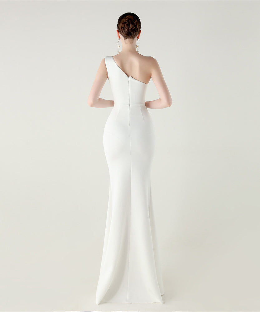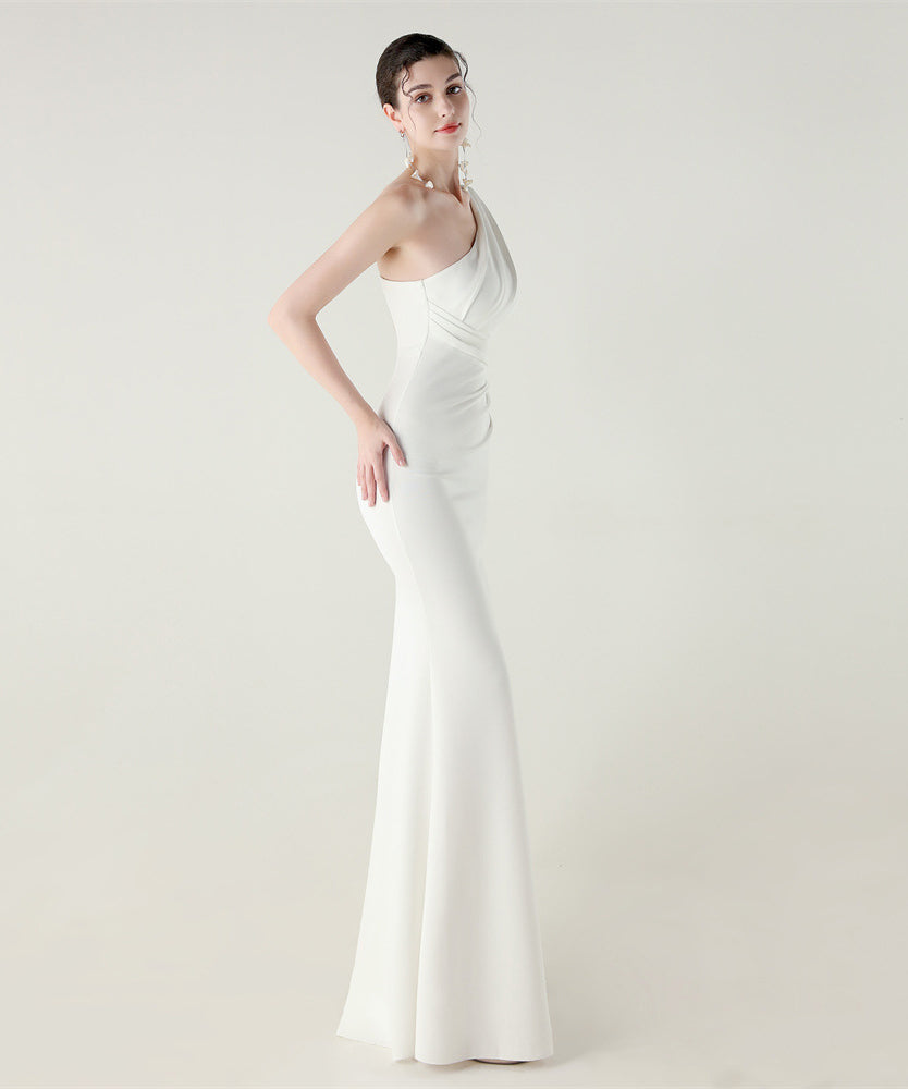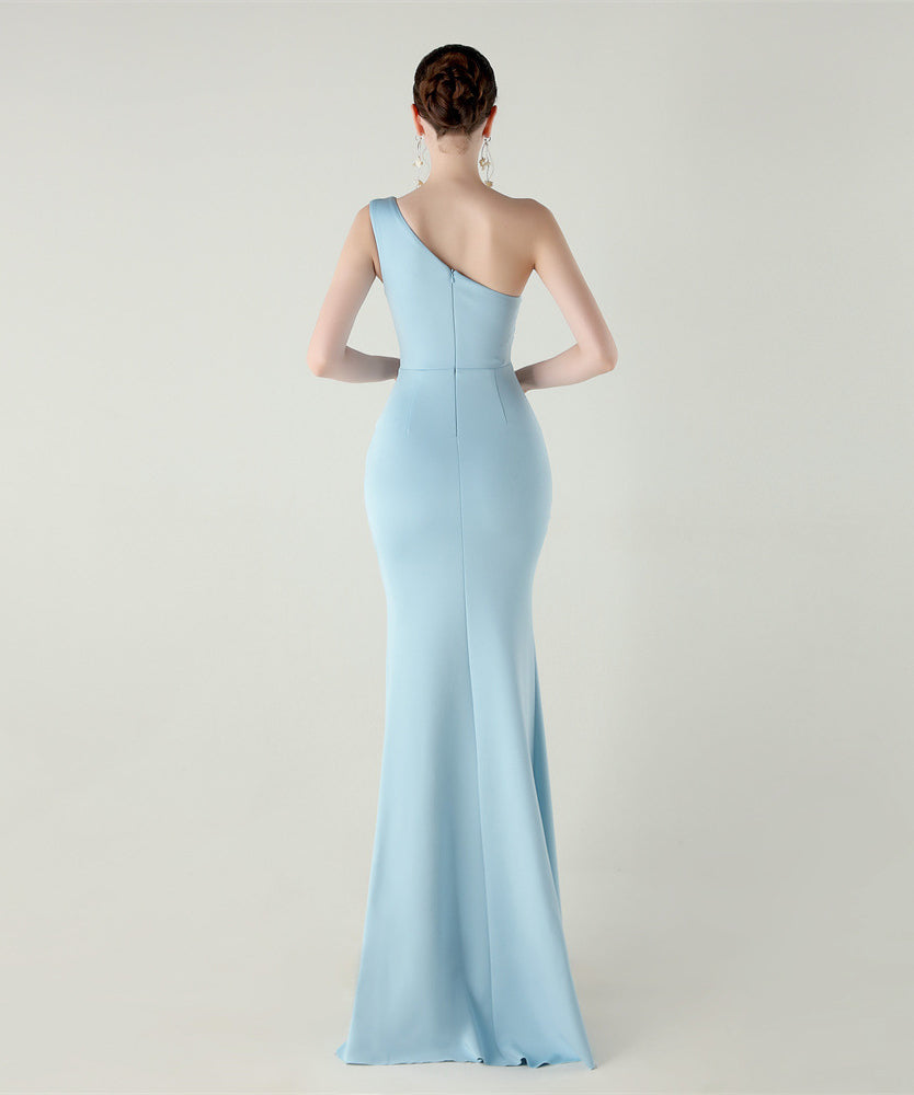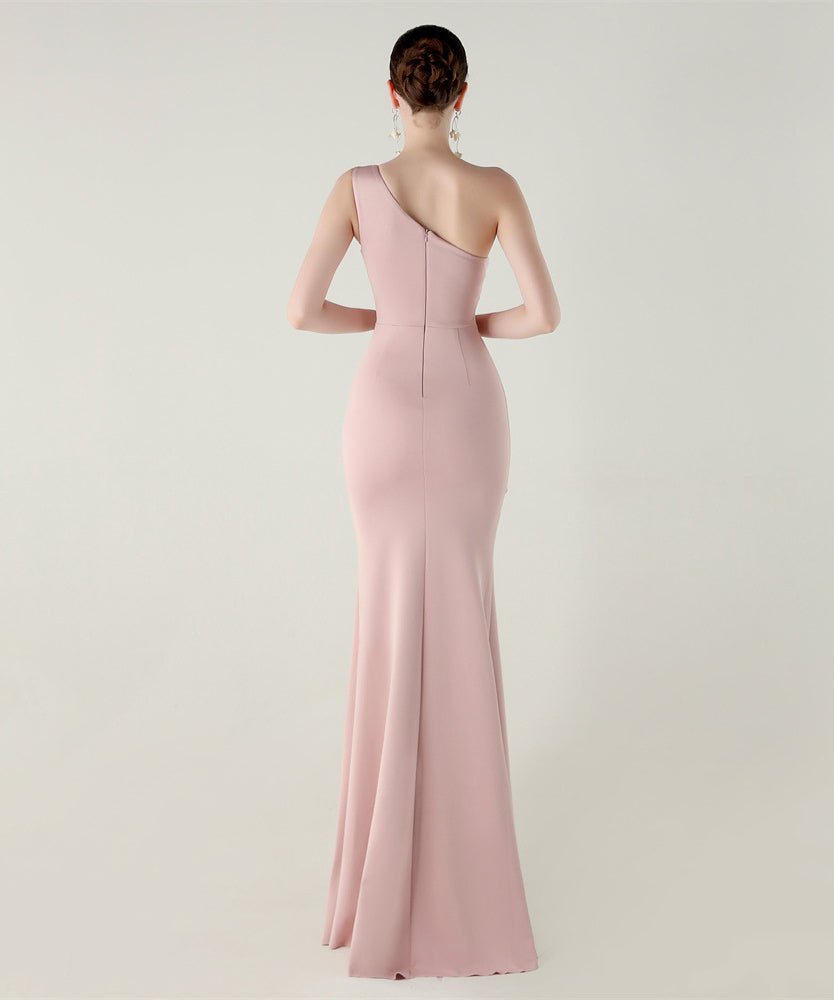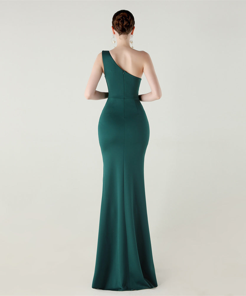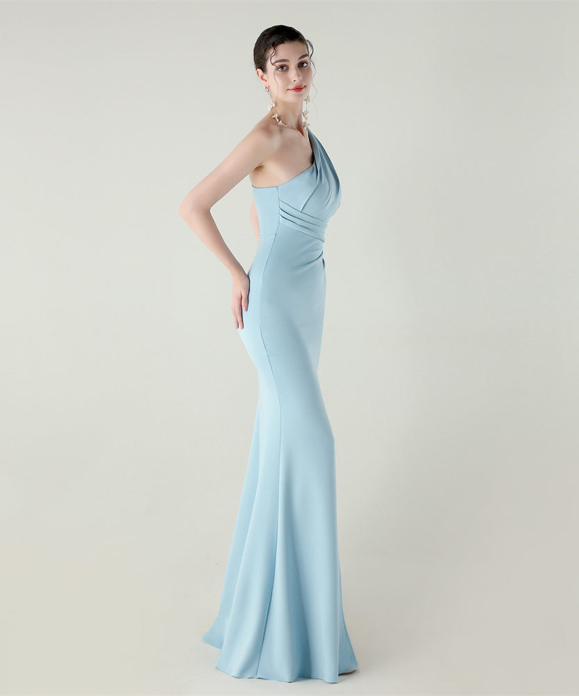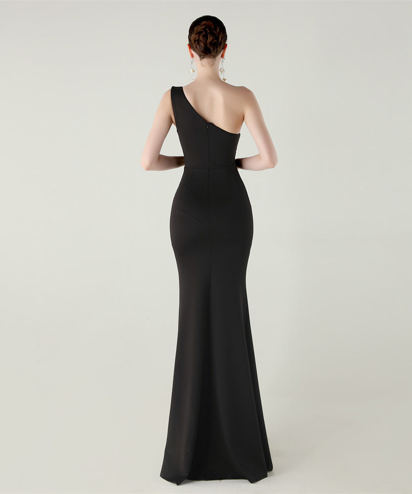 ロングドレス キャバドレス セクシー ワンショルダー サテン タイト マーメイドドレス プリーツ スリット入り 夜会 パーティー 結婚式 JC2-YEY33598