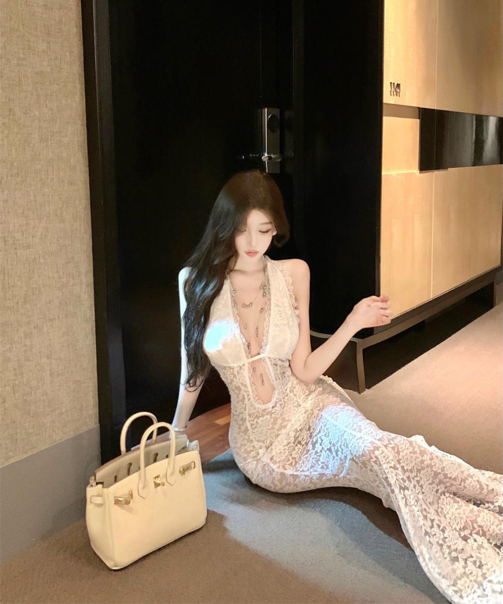 ロングドレス キャバドレス セクシー Vネック シアーレース ホルターネック ウエストマーク スリム見え タイトシルエット JC2-CD7-552-13470490