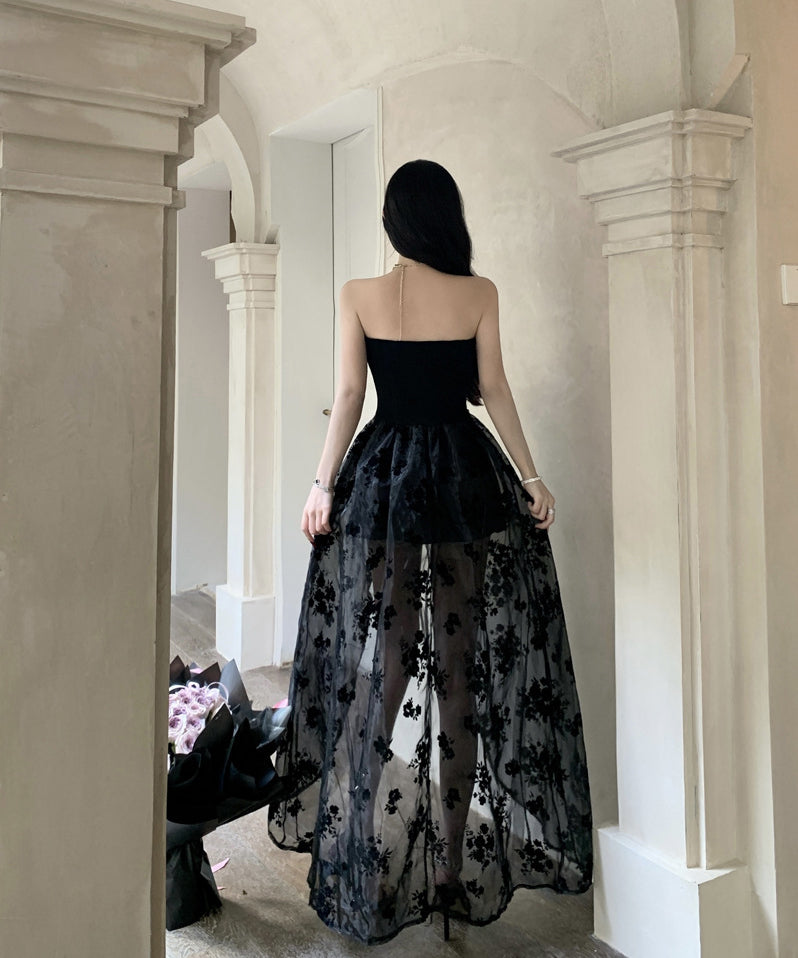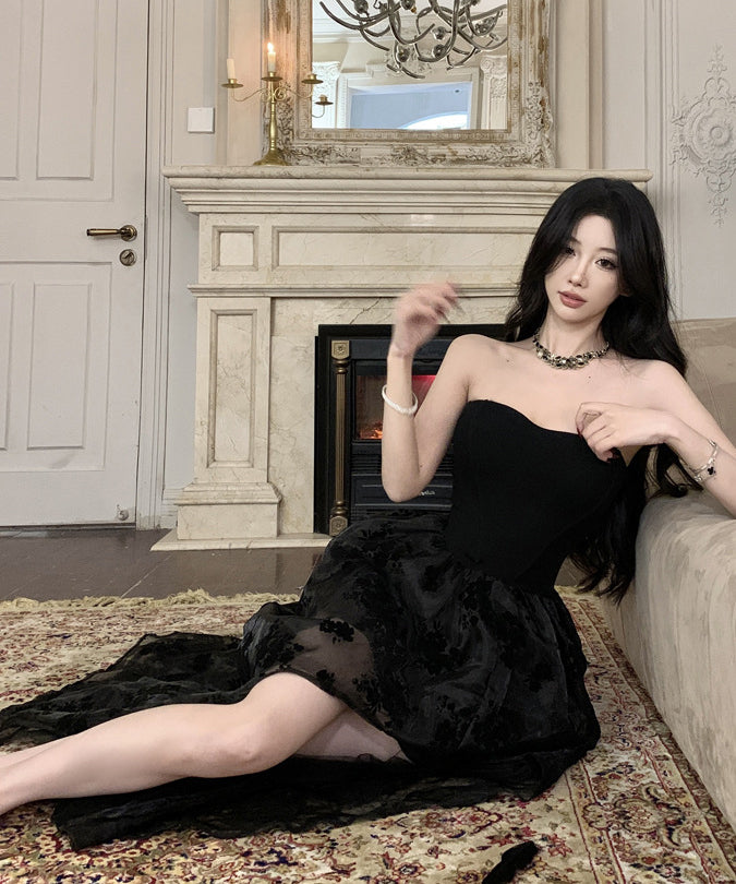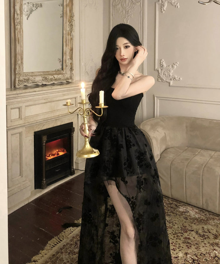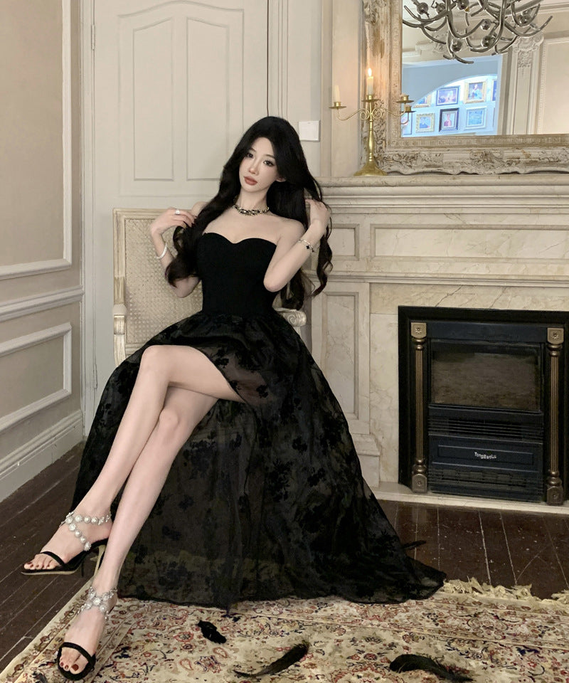 ロングドレス キャバドレス ベアトップ カワセクシー ナイトクラブ 花柄 宴会 おしゃれ XH2-CD3-141-25170620