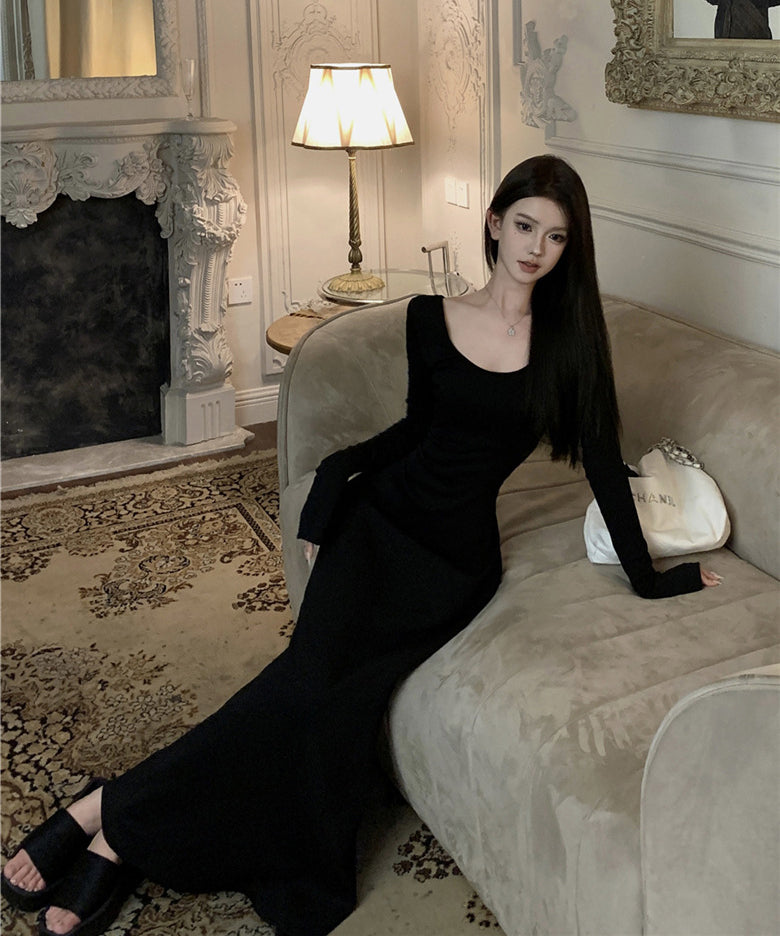 ロングドレス キャバドレス マーメイドライン ニット ロングスリーブ シェイプドウエスト 大人フェミニン JC2-XKDD337B-2138-Sep1
