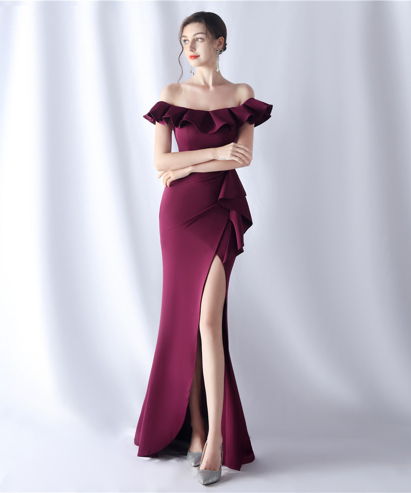 【5色】ロングドレス 高品質 ナイトドレス 宴会 オフショルダー 演奏会 XH2-YEY31528#
