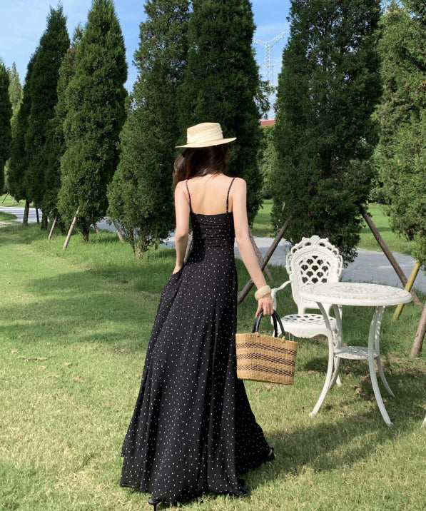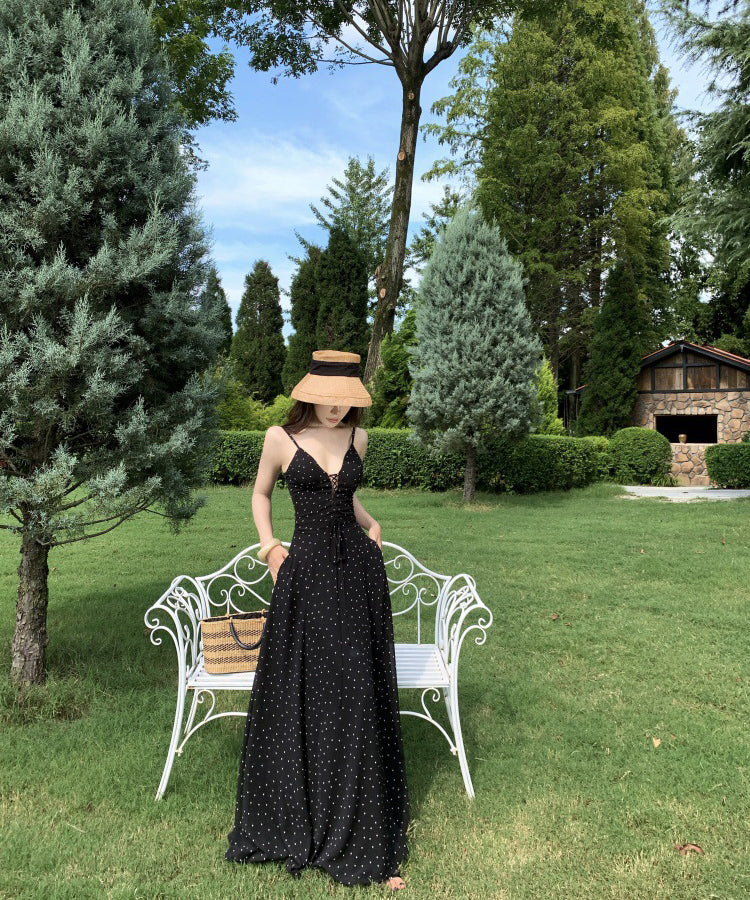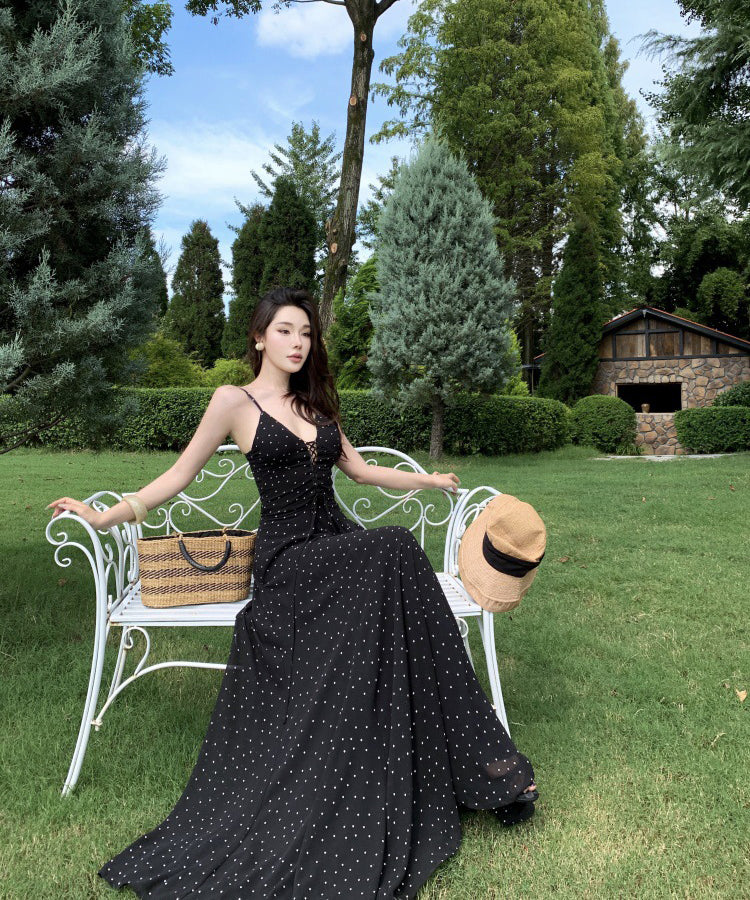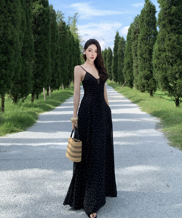ロングドレス キャミワンピ キャミワンピ フレンチレトロドット柄 Vネック エレガント 着痩せ デート 女子会 JC2-CD6-157-82430670