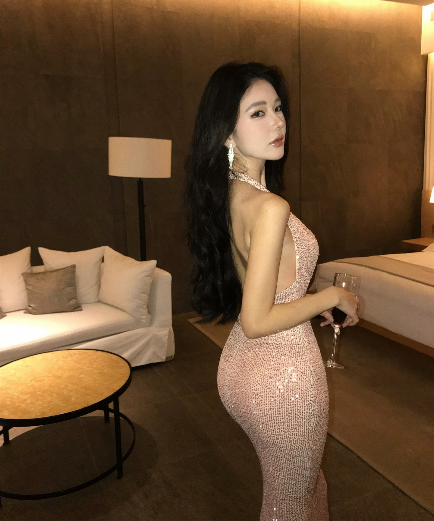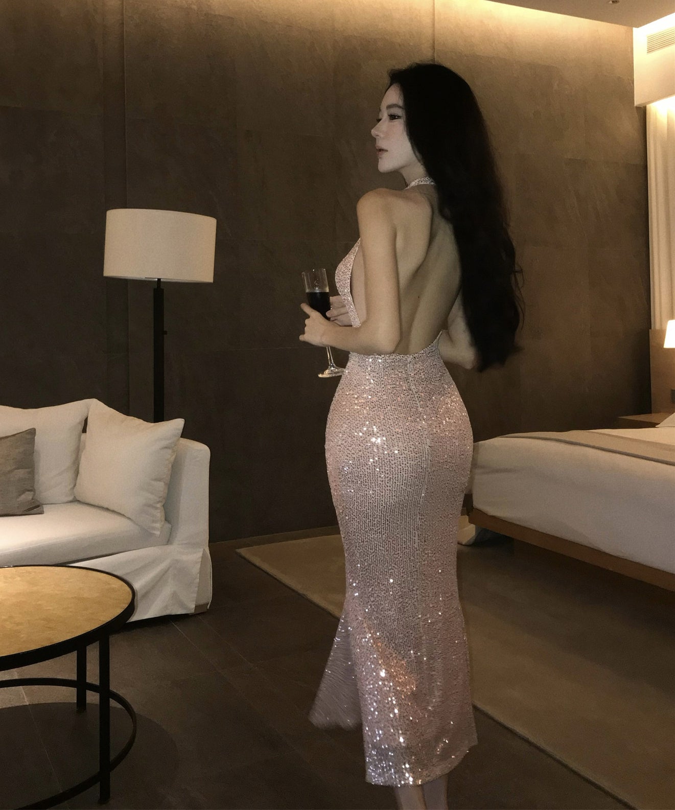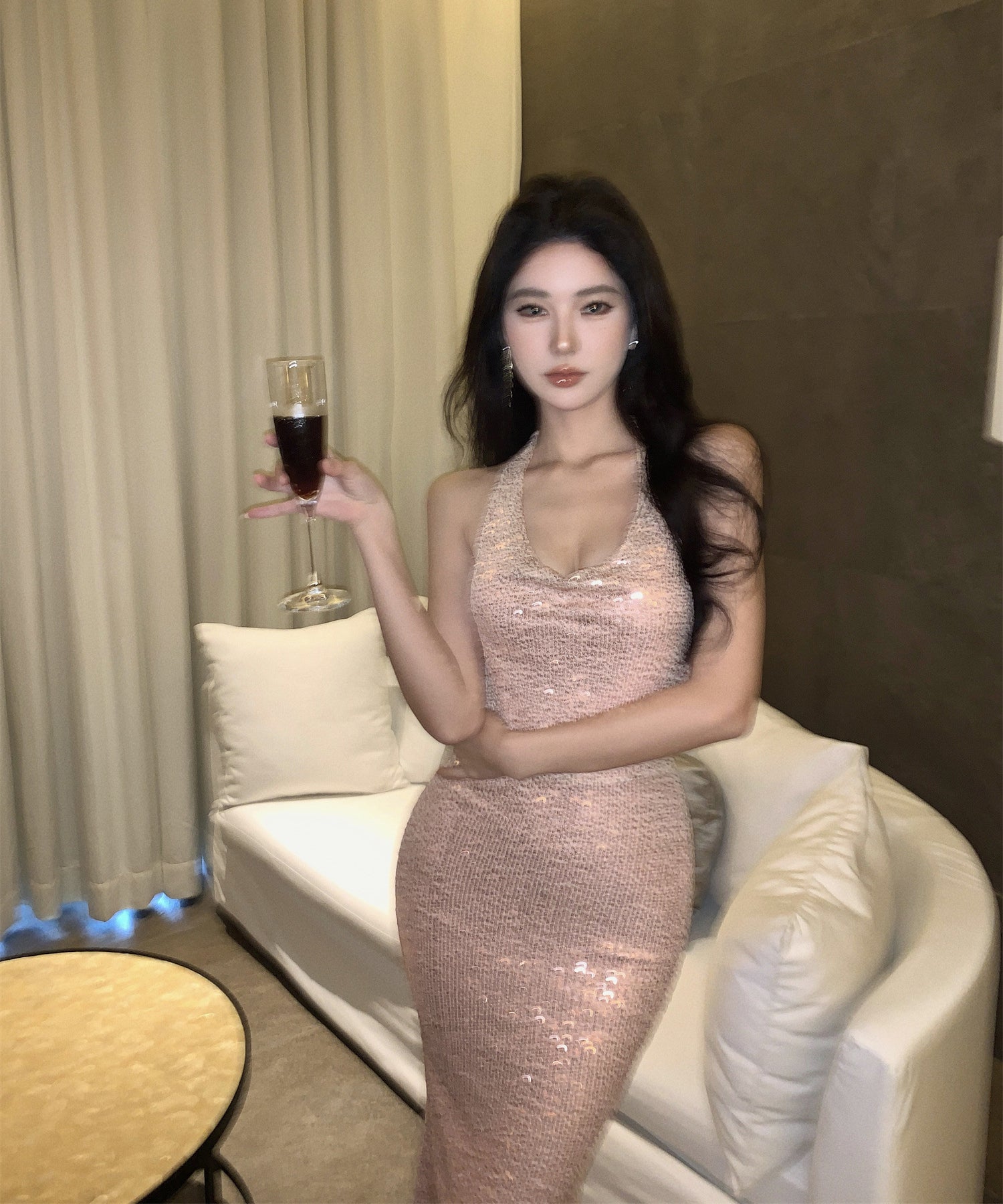 ロングドレス キラキラ キャバドレス partydress パーティー セクシー ホルターネック XH2-DD6472