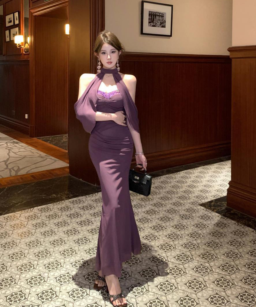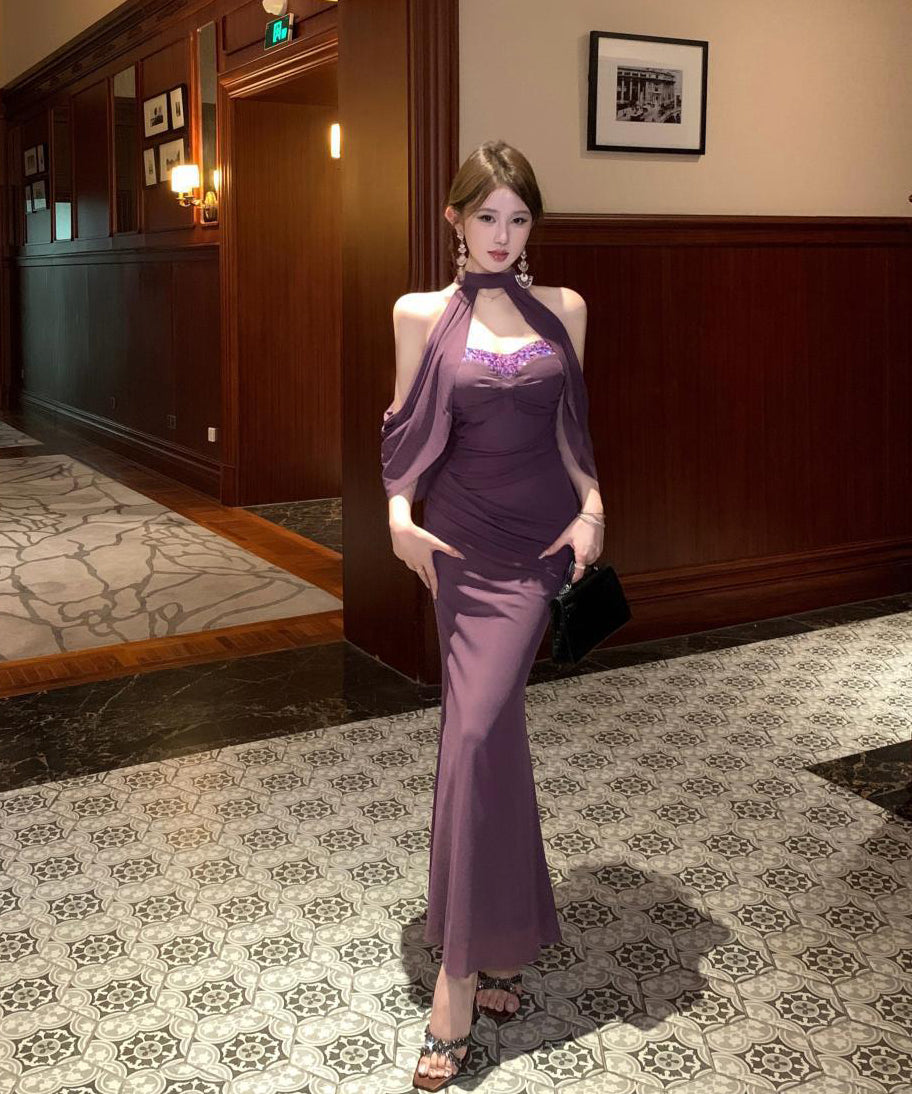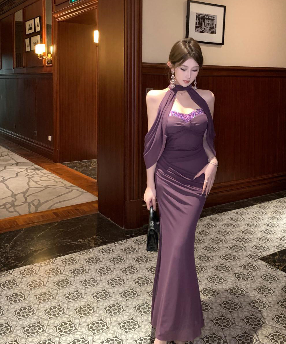ロングドレス キラキラ 2way ホルターネック セクシー 宴会 パーティー ナイトクラブ ベアトップ XH2-ZED886193DXH343A