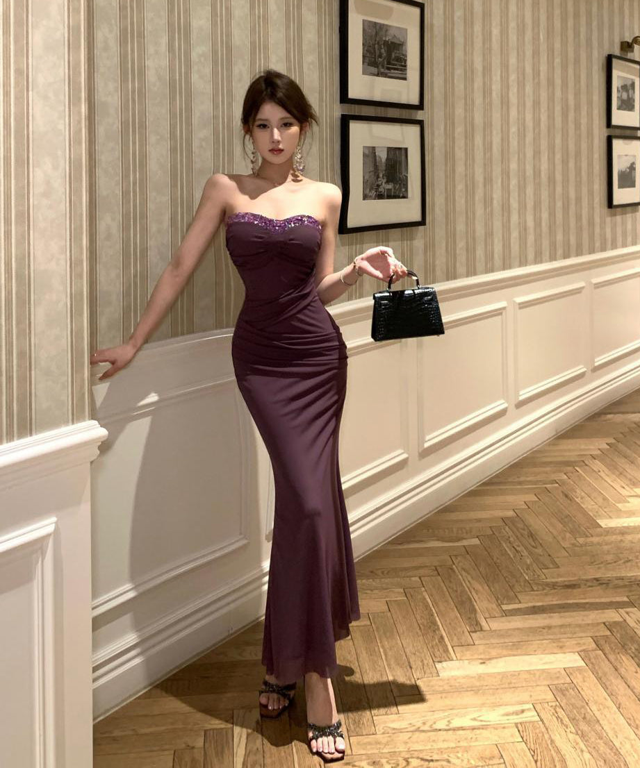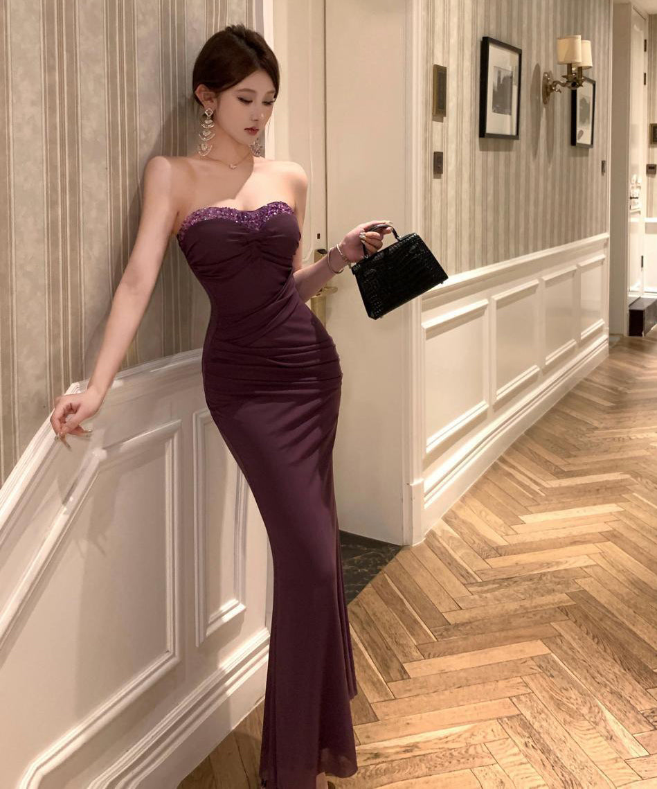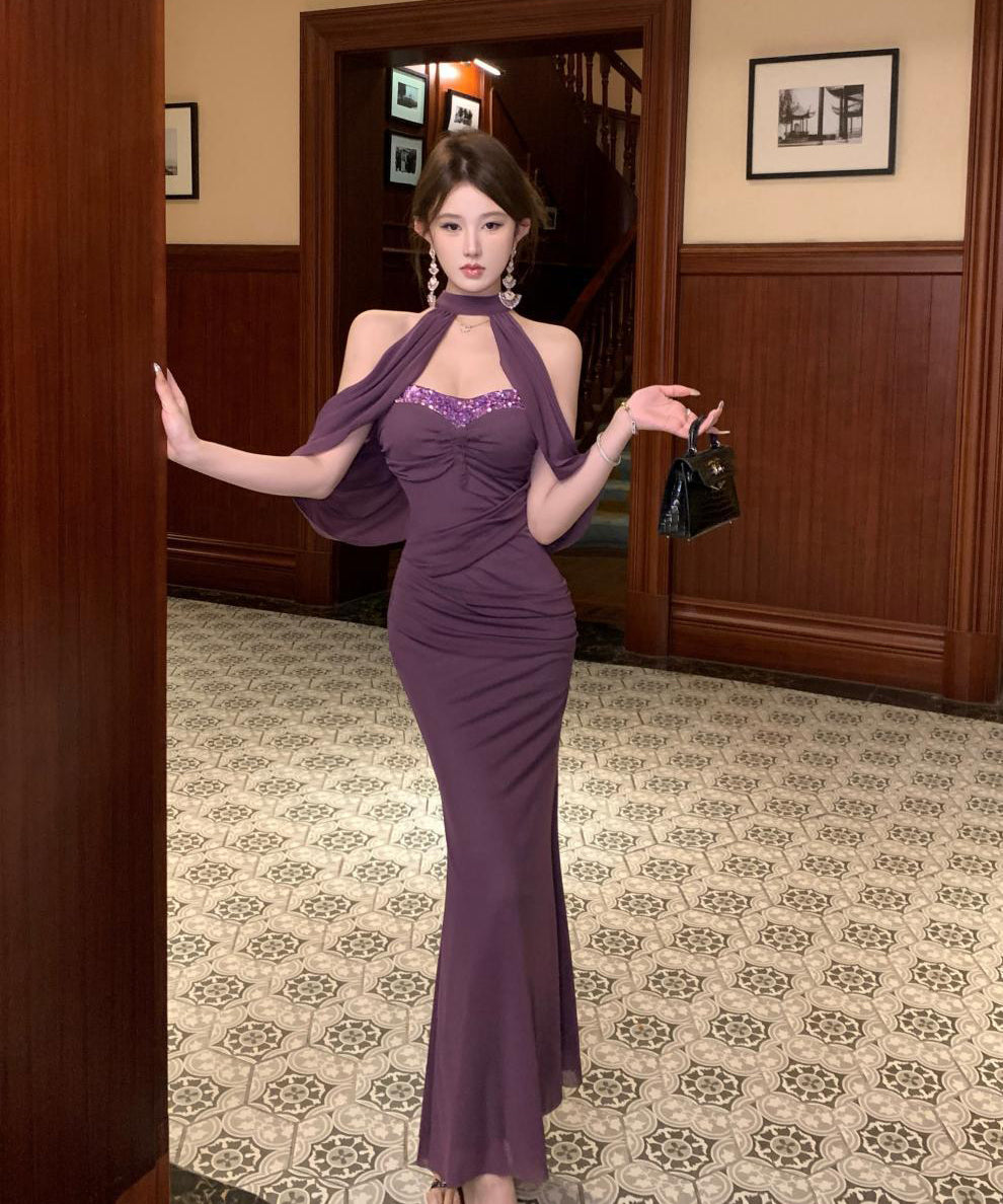 ロングドレス キラキラ 2way ホルターネック セクシー 宴会 パーティー ナイトクラブ ベアトップ XH2-ZED886193DXH343A