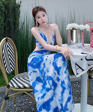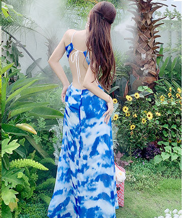 ロングドレス サンドレス 海辺花火 仙女風 絞り染めデザイン LT2-QJ5815