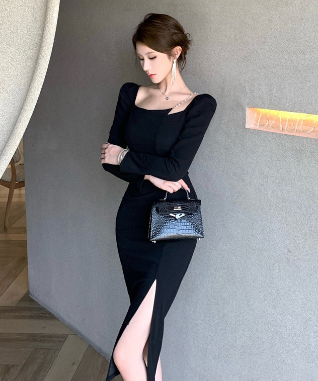 ロングドレス セクシー バックレス スリット入り タイトワンピース 長袖 エレガント パーティー デート クラブ 指名 JC2-ZED881206DXH348B