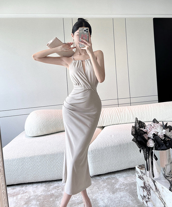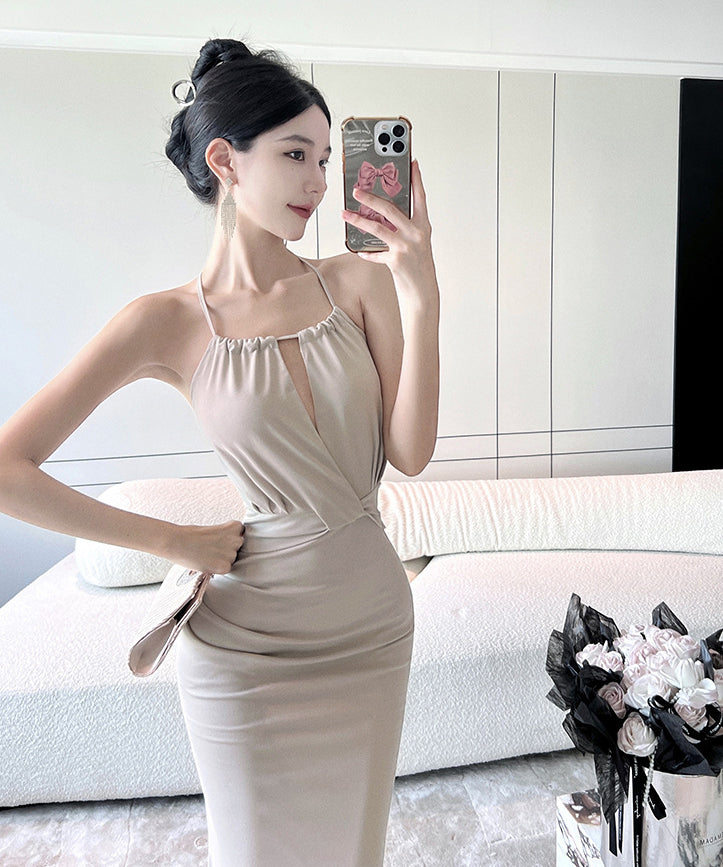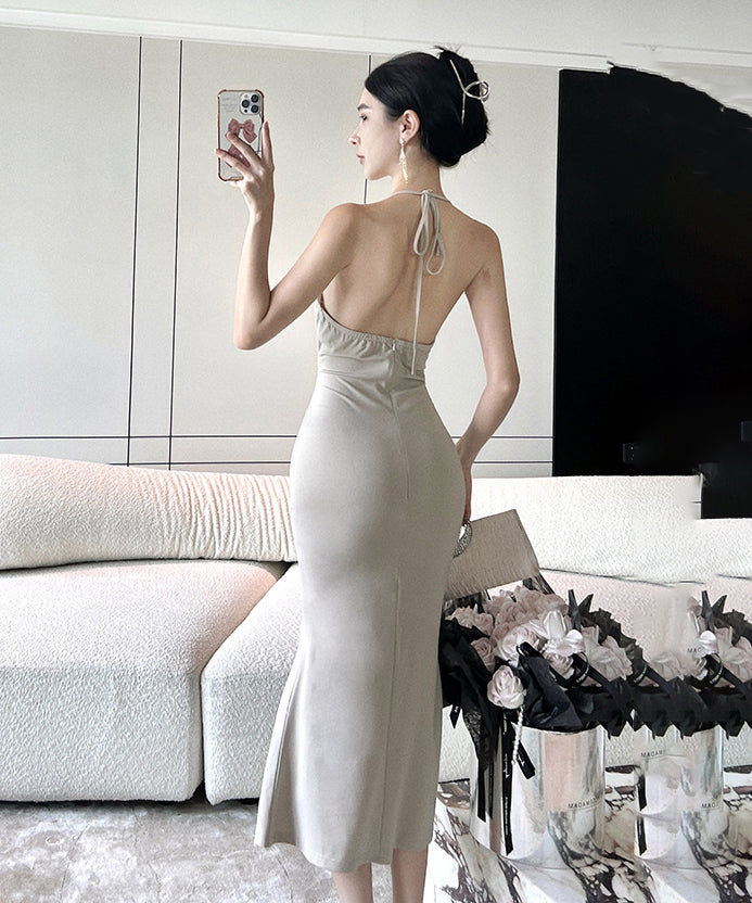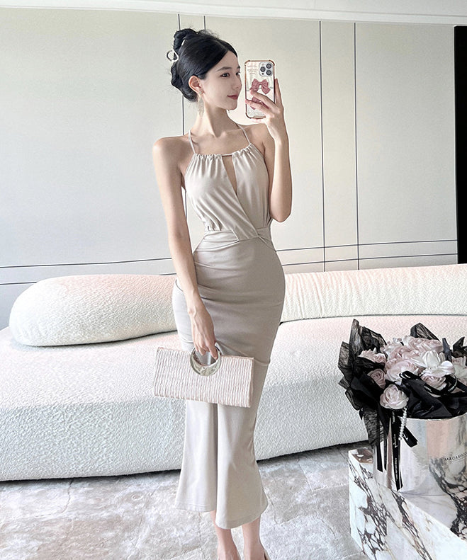 ロングドレス セクシー ホルターネック セクシー マーメイドドレス XH2-DD6005