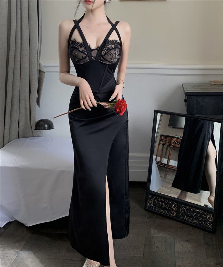 ロングドレス セクシー レース 谷間見せ party 気質 エレガント XH2-DD6332