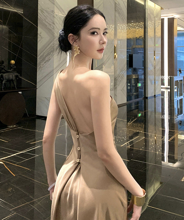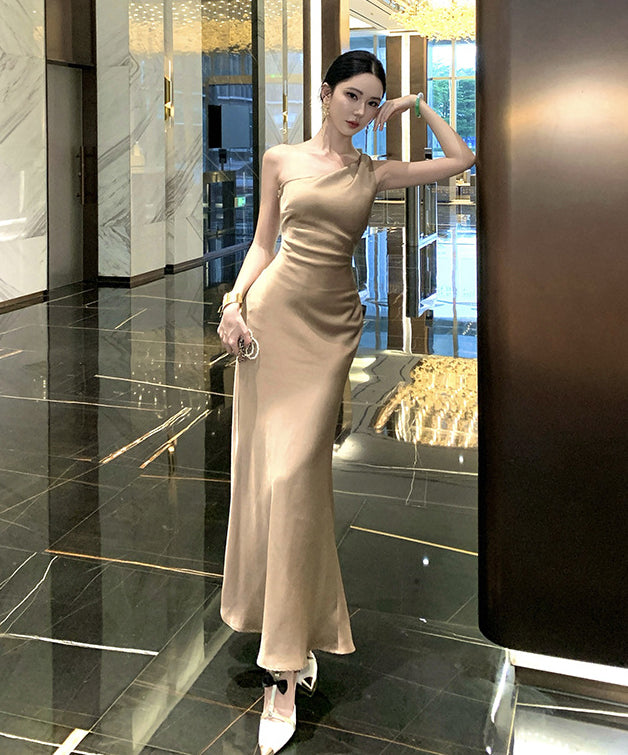 ロングドレス セクシー ワンショルダー バックレス フレンチエレガント 誕生日パーティー イブニング用ドレス JC2-CD3-260-70230620