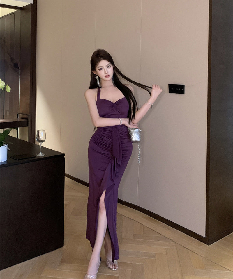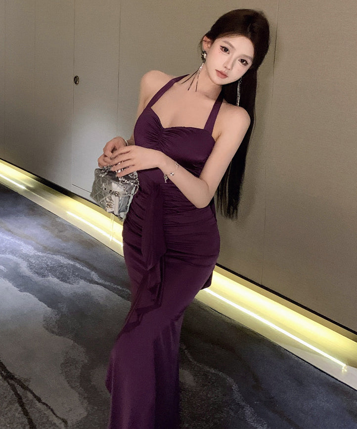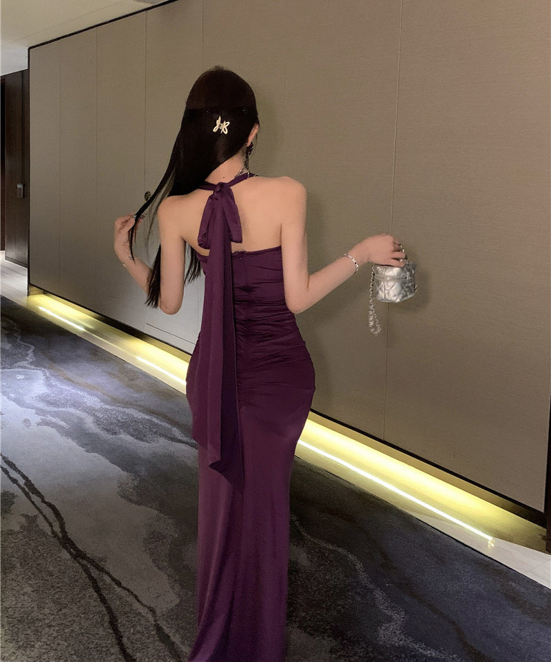 ロングドレス セクシー 宴会 ホルターネック エレガント 気質 美脚効果 XH2-XKD-D342-711-May19