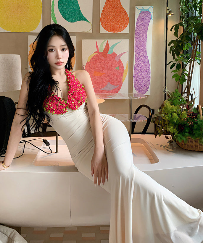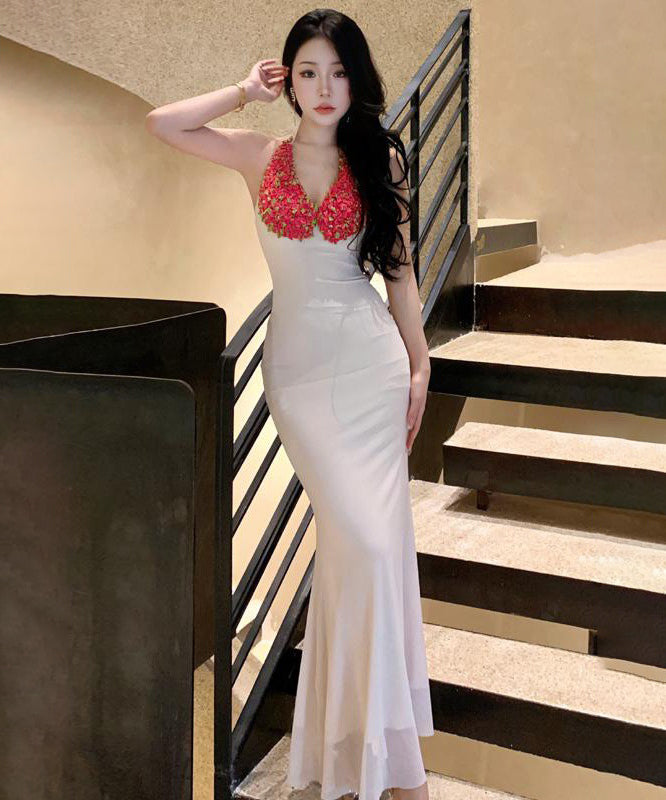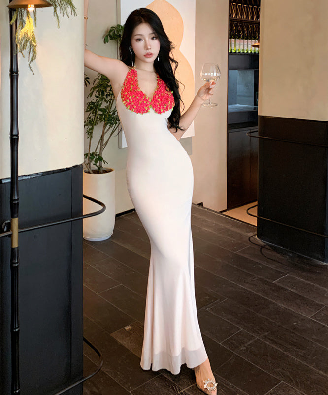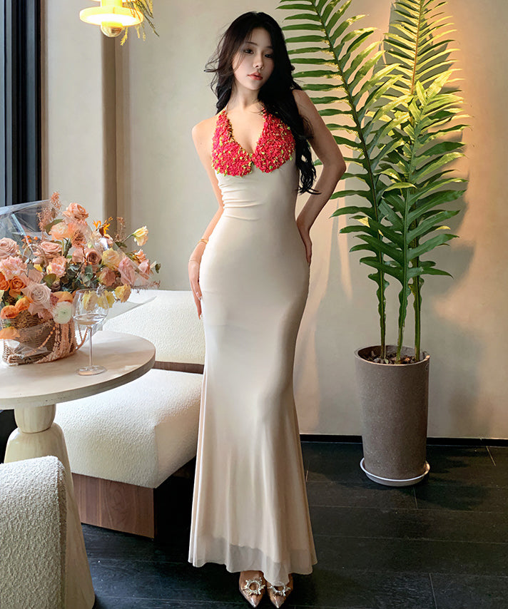 ロングドレス タイトドレス sexy Vネック 花 ユニーク XH2-LQE1981GT22